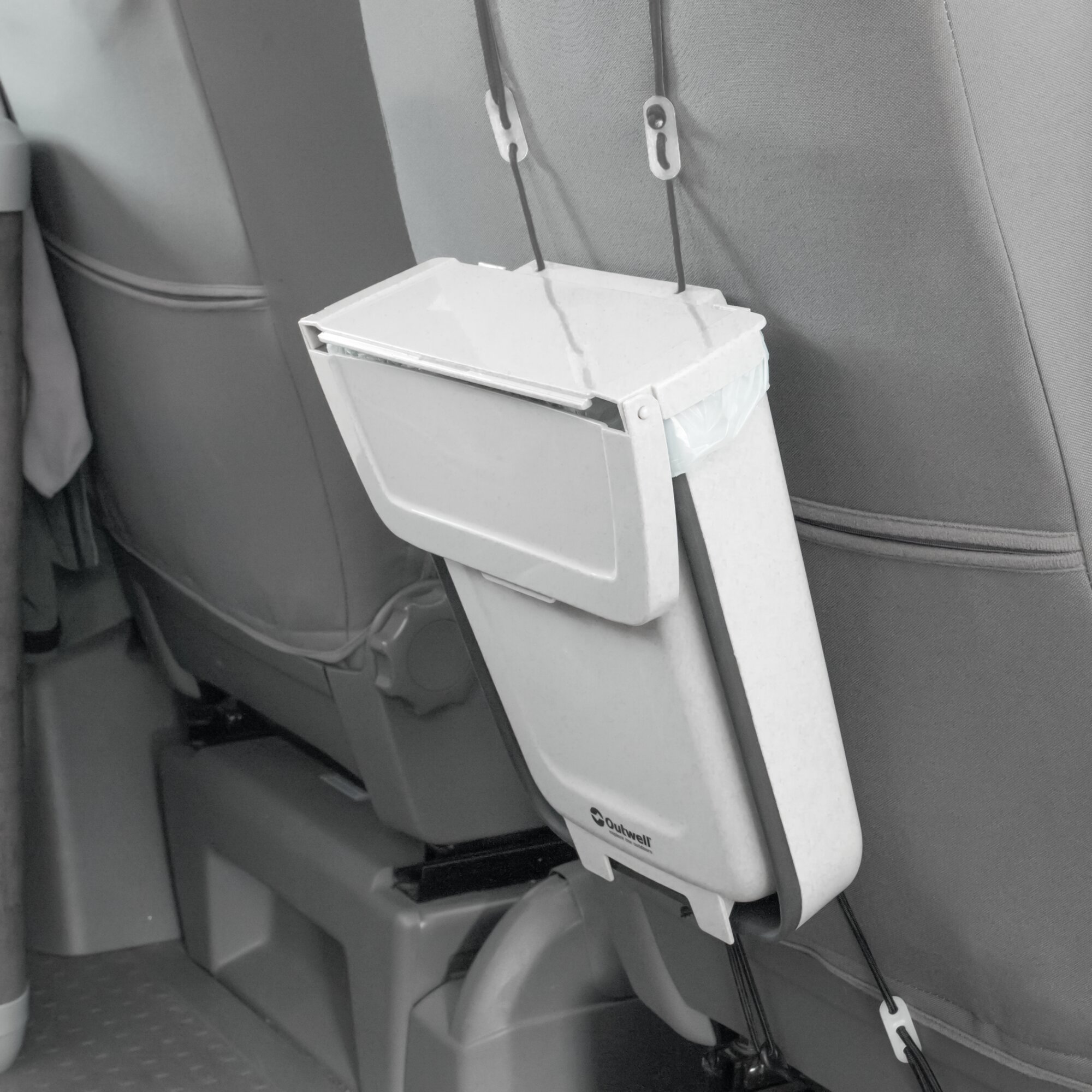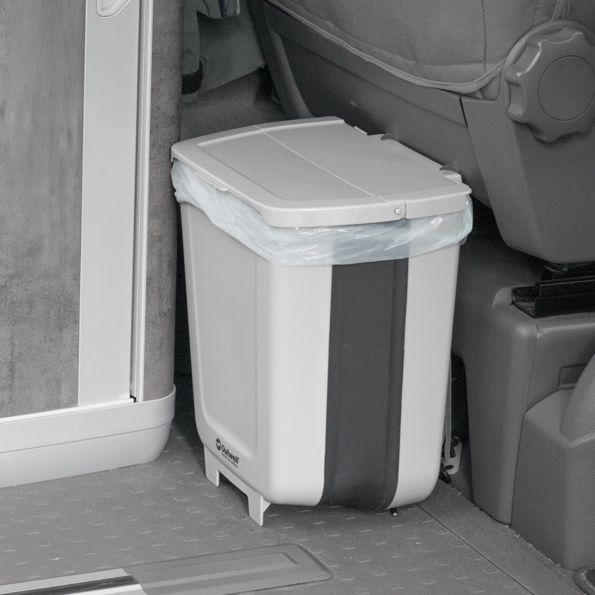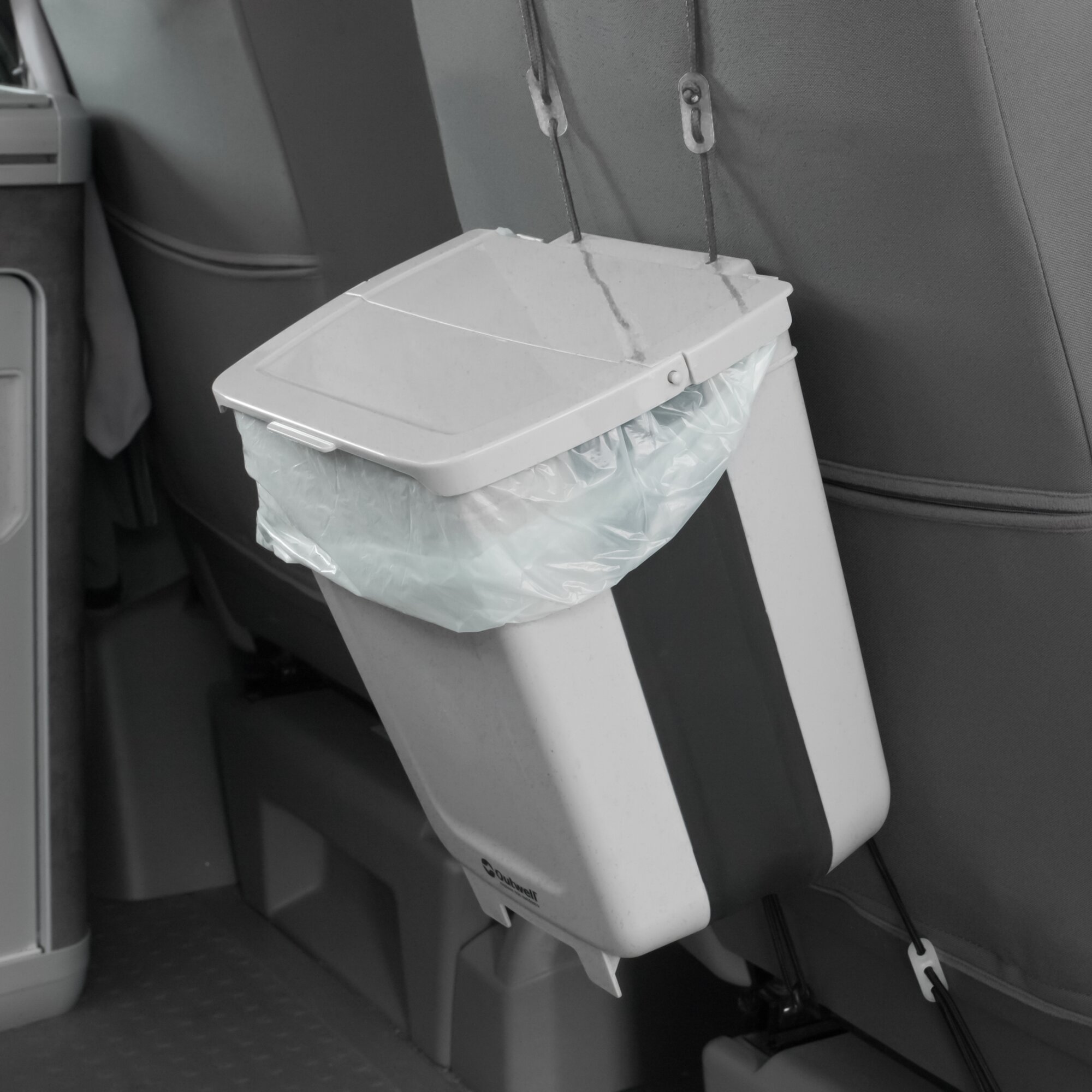 Praktischer, freistehender Mülleimer mit Faltmechanismus und verstellbarem Deckel & Korpus. Einfach zu reinigen, kompatibel mit Standardbeuteln, auch am Sitz fixierbar.