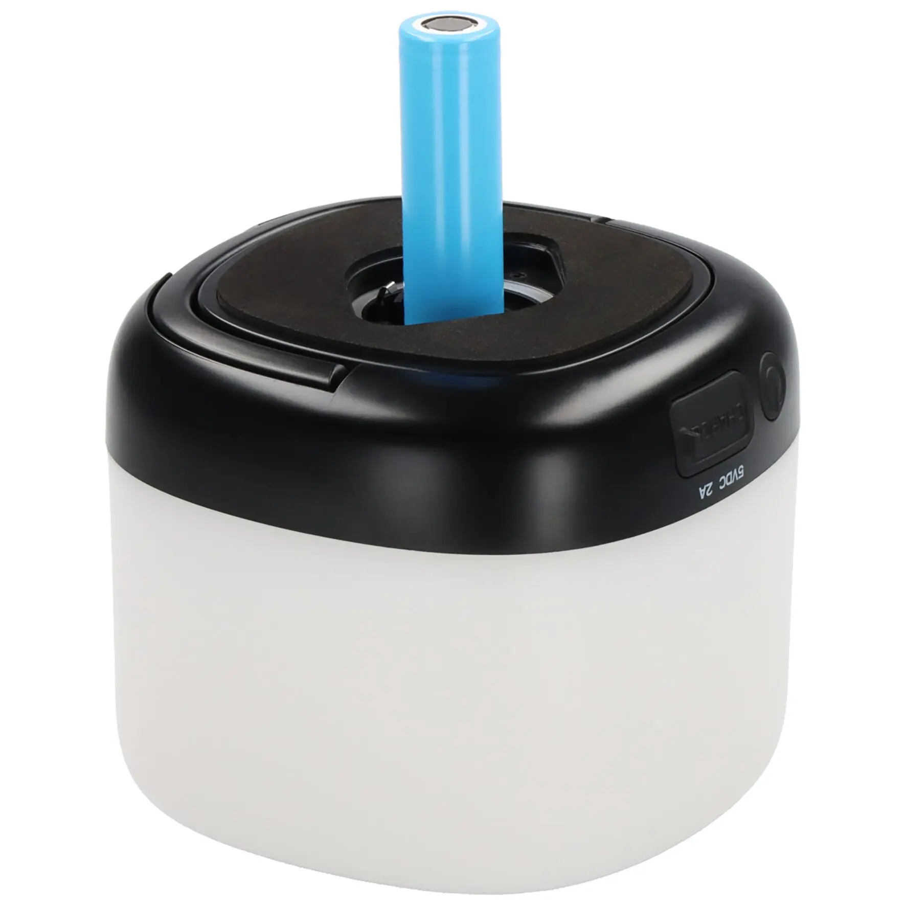 UV-resistente LED-Lampe mit Antirutsch-Gummierung und ausklappbarem Bügel. Mit austauschbarem Standard-Li-Ion-Akku 18650, über USB-C-Kabel oder Solarpanel aufladbar. Inkl. 3 Schaltstufen (100 %, 50 % oder 10 %) und Powerbank-Funktion. IP44. Kapazität: 2,5 Ah. Batterie-Technologie: Lithium-Ion.