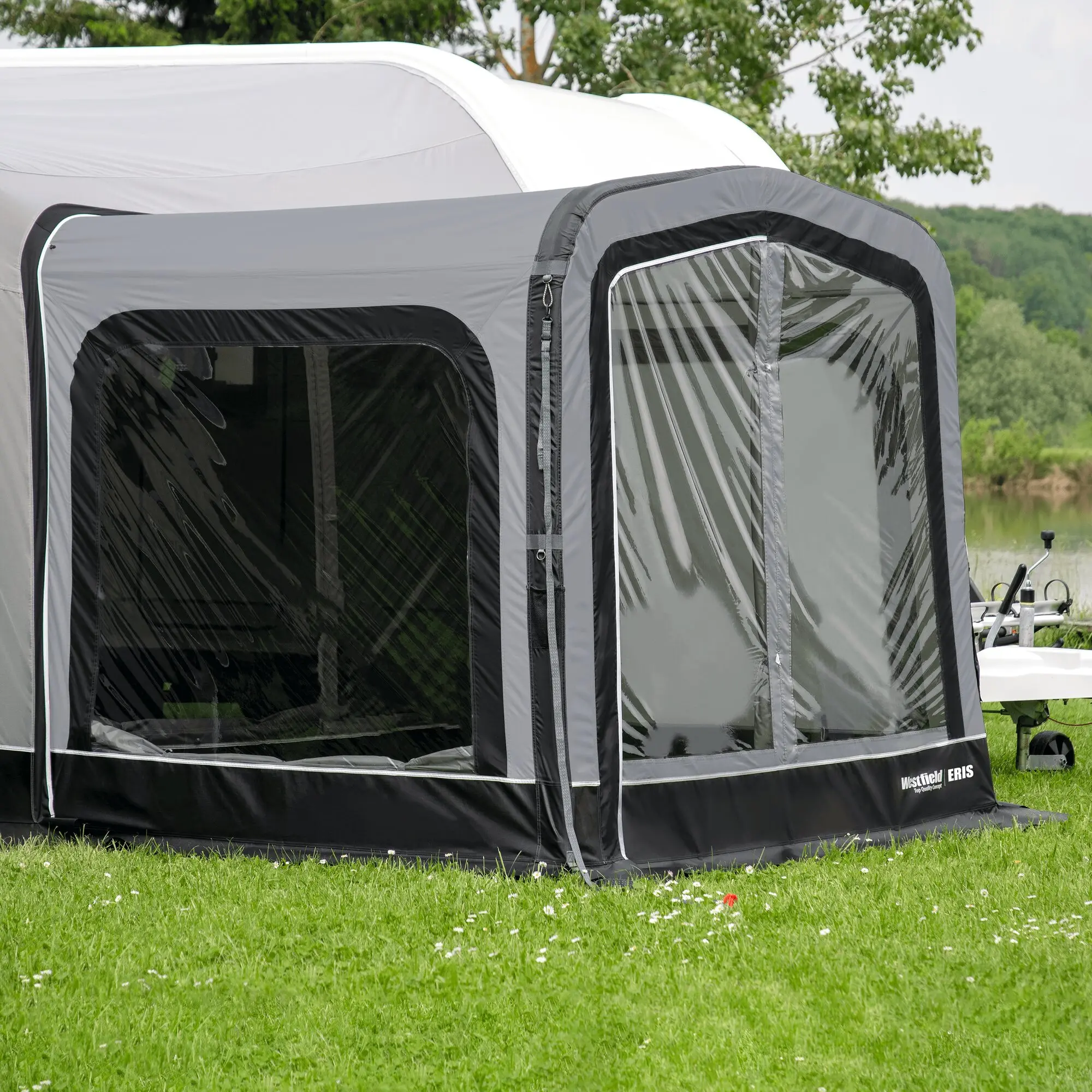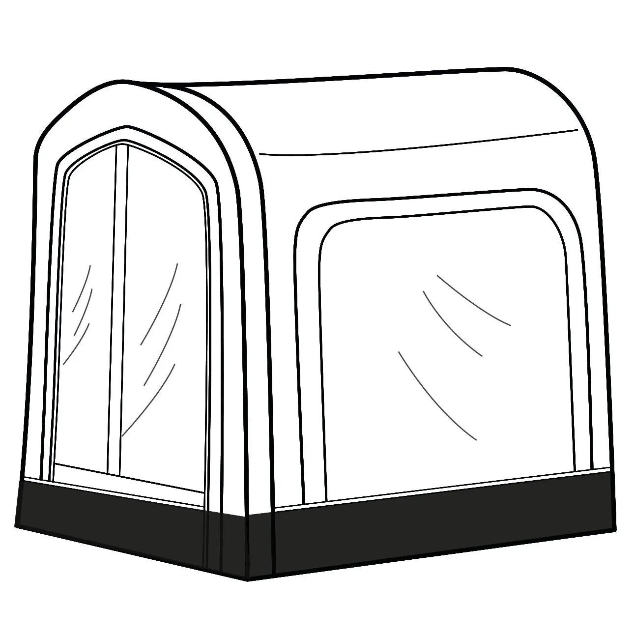 Die Wohnraumerweiterung ist schnell und einfach aufgebaut und vielseitig einsetzbar. Mit Tür, getönten Fenstern und einer Stehhöhe von 180 cm. Dank Doppelreißverschluss kann die Seitenwand Ihres Luftvorzelts als Trennwand genutzt werden. Inkl. Dachstangen.