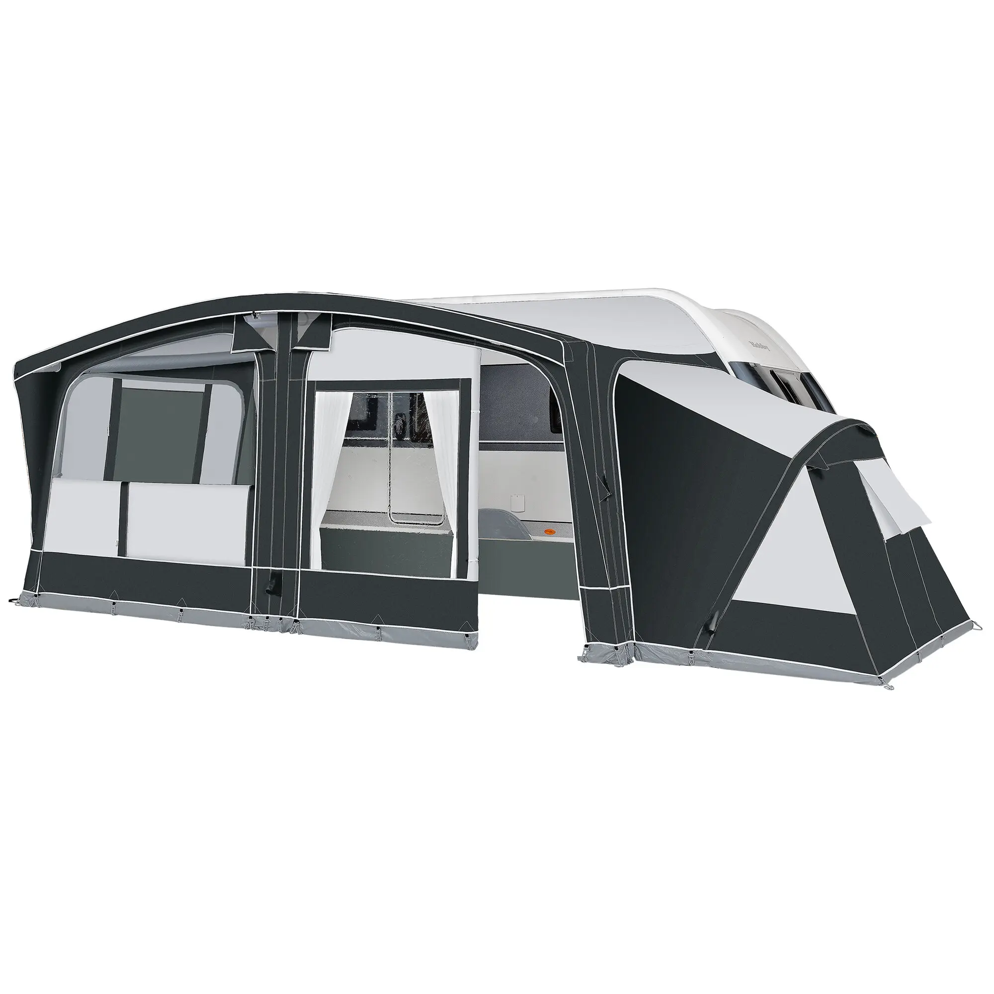 Erweitere dein Reisevorzelt Octavia Air mit dem Anbau, um noch mehr Stauraum zu bekommen. Die Befestigung erfolgt einfach und stabil mittels Reißverschluss. Gestänge: Airtube.