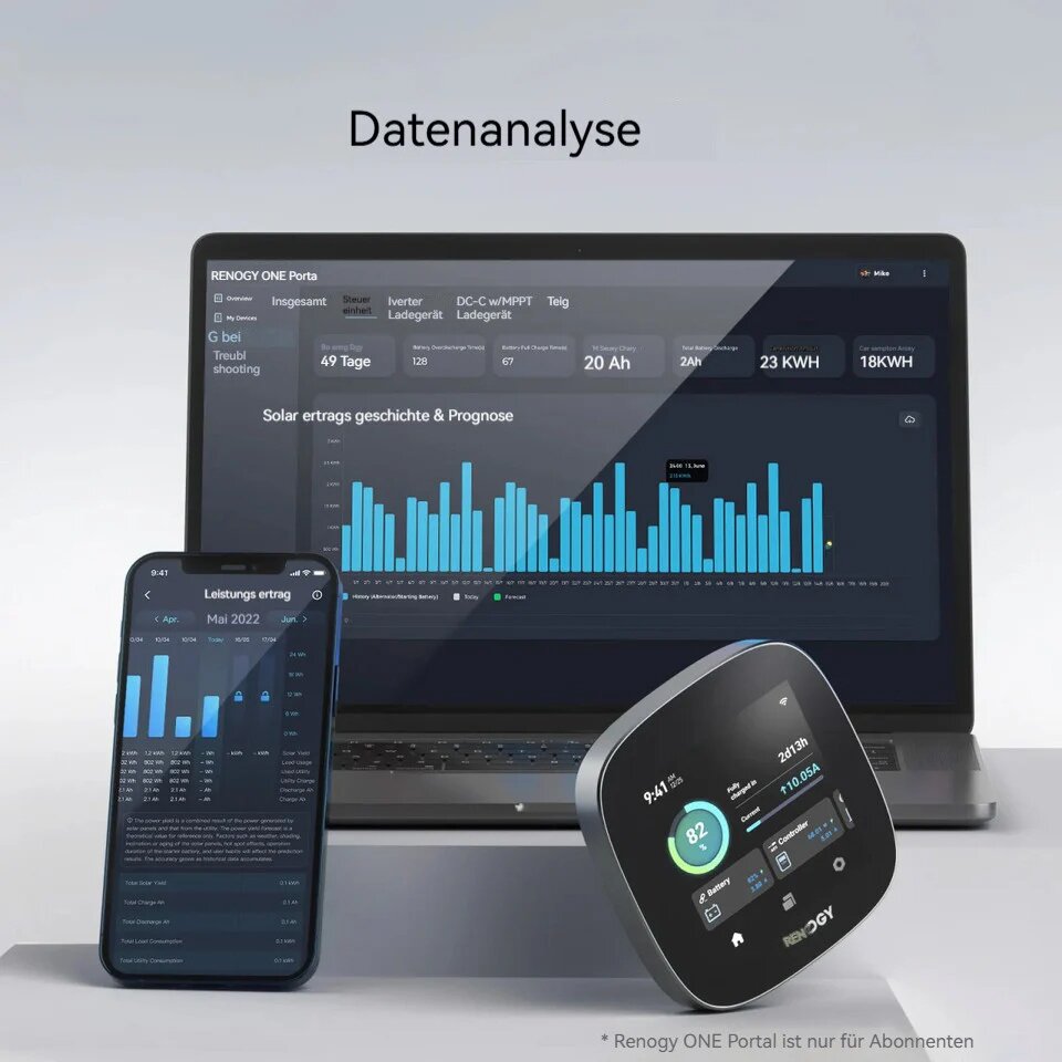 Mit dem Renogy ONE Core überwachen Sie Ihre Energie weltweit in Echtzeit und auf mehreren Geräten gleichzeitig. Das cloudbasierte System ermöglicht eine 24/7-Analyse von Energieerzeugung und -verbrauch, um Abläufe zu optimieren, Kosten zu senken und den CO₂-Fußabdruck zu reduzieren. Es eignet sich besonders für Inselanlagen und autarke Anwendungen. Zusätzlich verbindet ONE Core Energieüberwachung mit Hausautomation und lässt sich mit Zubehör wie Türalarmen oder Klimasensoren kombinieren, um Komfort und Sicherheit zu erhöhen.