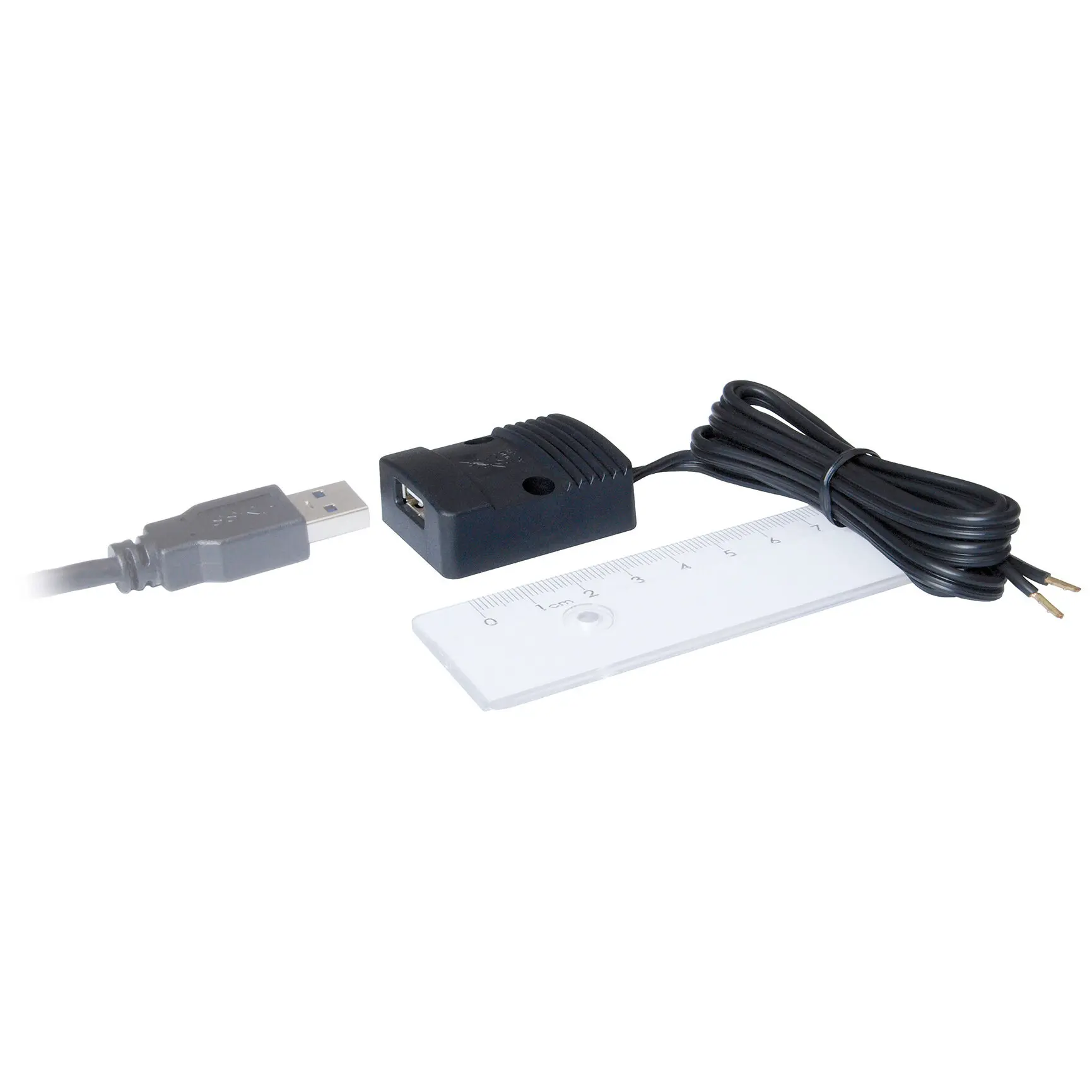 Flache Power-USB-Steckdose mit integriertem Spannungswandler. Zum Laden und Betreiben elektronischer Geräte, die mit 5 V/3000 mA USB geladen werden können. Inklusive Befestigungsschrauben. Überlast-/Temperatur-/Verpolungsschutz.