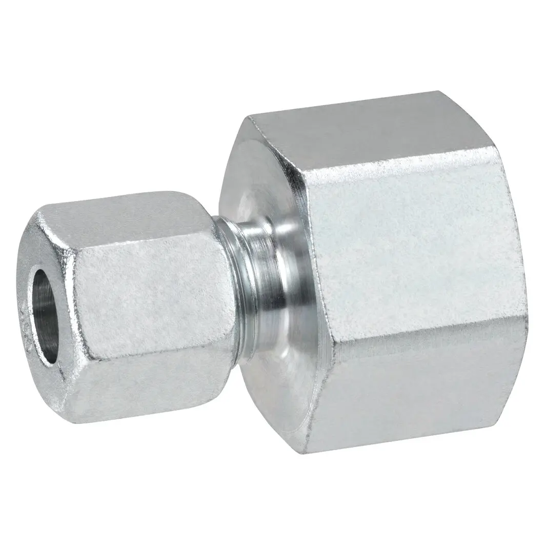 Gerade Aufschraubverschraubung mit Überwurfmutter Typ M und Schneidring Typ D für Stahlrohre. Für Haushaltskocher mit Rohrgewindeanschluss.