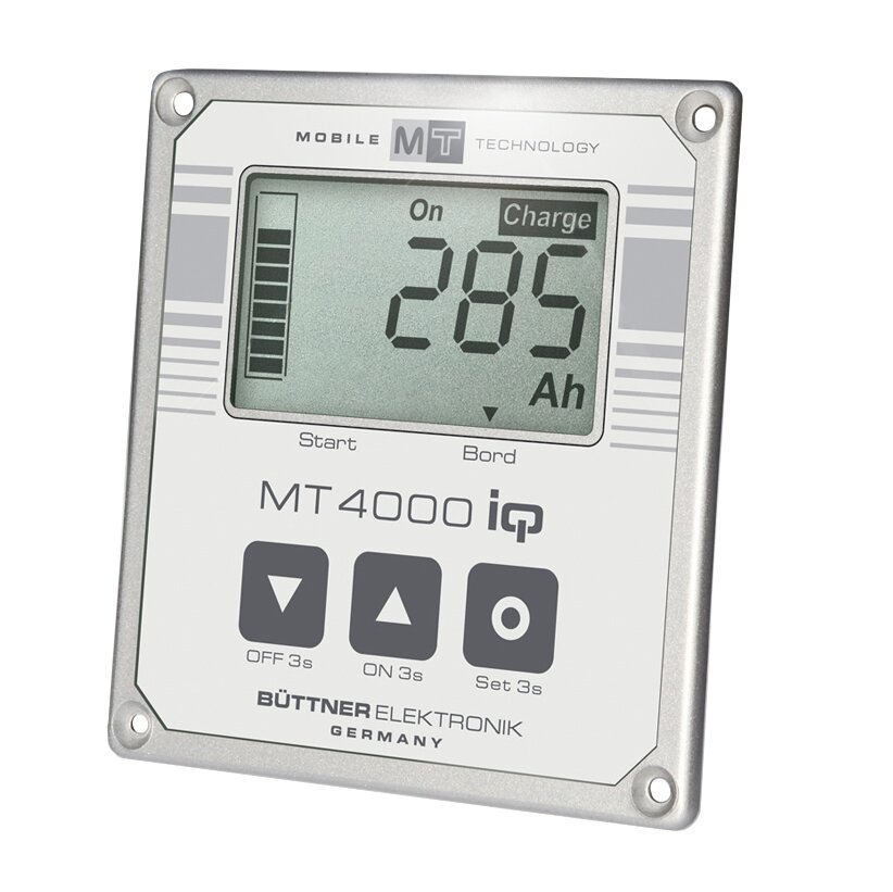 Einfach zu bedienendes Kombi-Gerät zur Anzeige von Spannung, Lade-/Entladestrom und der noch verfüg­baren Batteriekapazität in Ah und Prozent. Abrufbar sind zudem die zu erwartende Restlaufanzeige (bei aktuellem Verbrauch), die Außentemperatur (Min/Max-Speicher), die Uhrzeit sowie das Datum. Über einen Schaltausgang können Verbraucher zu bestimmten Schaltschwellen (frei programmierbar) automatisch an- bzw. ausgeschaltet werden. Die fließenden Ströme werden über einen sogenannten Mess-Shunt erfasst, der unmittelbar am Batterie-Pol sitzt und die Messwerte an die Rechenelektronik weitergibt.