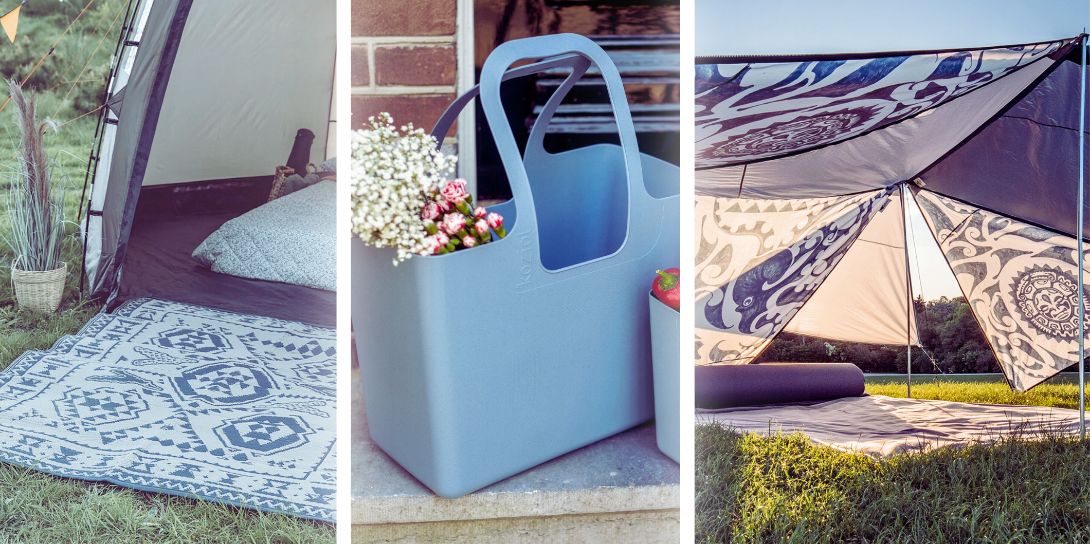 Frisch ausgeschlafen schlenderst du nach deinem morgendlichen Kaffee zum nahe gelegenen Wochenmarkt und entdeckst saftige Tomaten, frischduftenden Basilikum und original-italienischen Mozzarella für deinen Mittagssnack. Am Blumenstand stellt dir eine freundliche Dame einen sommerlich-leichten Strauß zusammen, der ideal in die Vase auf deinem Vorzeltplatz passt. Alles findet ideal Platz in deiner großen Koziol Tasche. Angekommen am Urlaubsdomizil genießt du einen kühlen Eistee und legst dich auf deinen kuscheligen Outdoor-Teppich Bilberry Square in die Mittagssonne, denn das Bent Sonnensegel mit hohem UV-Schutz ist bereits über dir aufgespannt, sodass du einfach nur die Wärme genießen und noch einmal eindösen kannst.