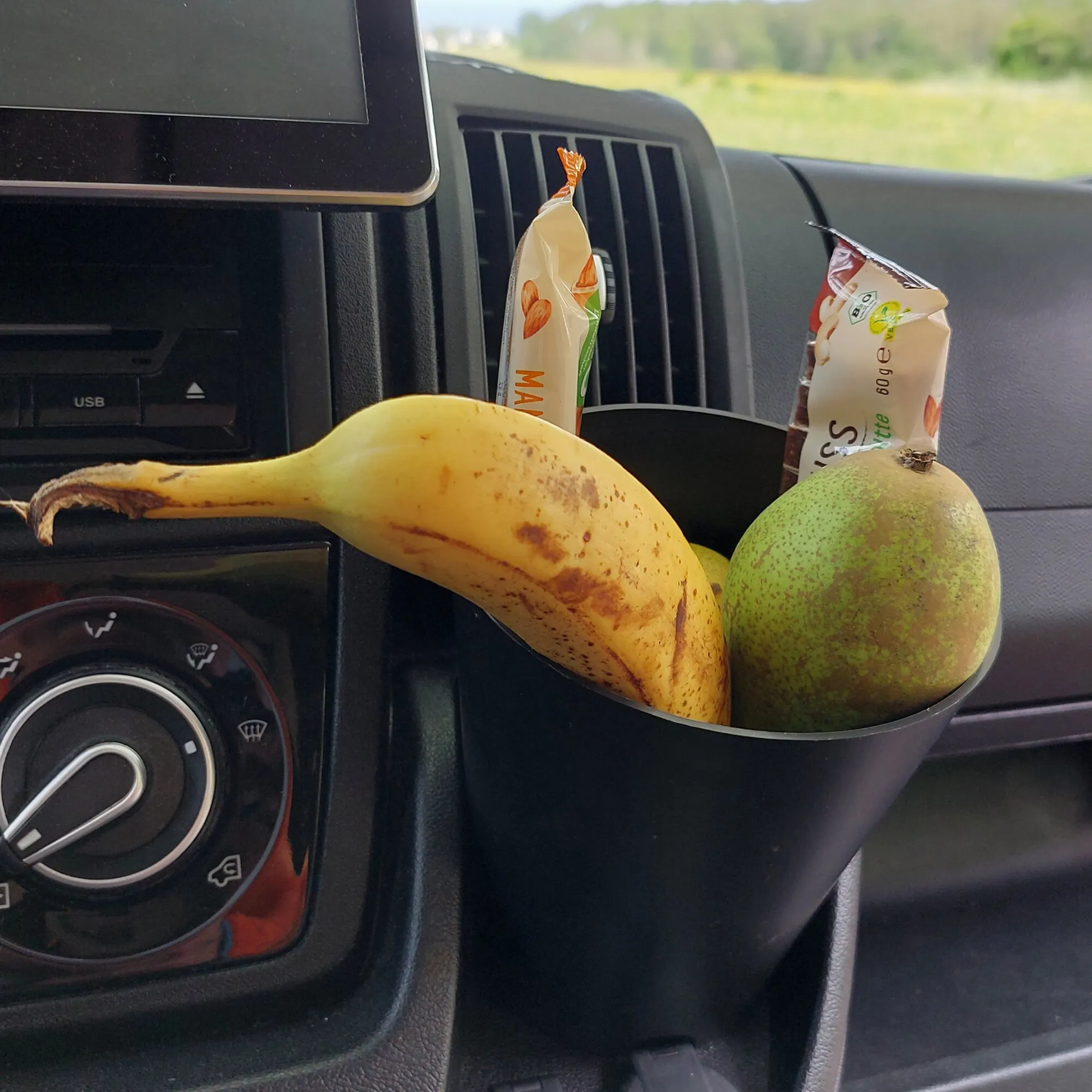 Blumentopf/Getränkehalter für Fiat Ducato, Peugeot Boxer, Citroën Jumper u. a. (ab 2006, nicht ab 2021). Sicherer Pflanzentransport ohne Erde/Staunässe, für Töpfe bis ø 12 cm, robust und UV-beständig.