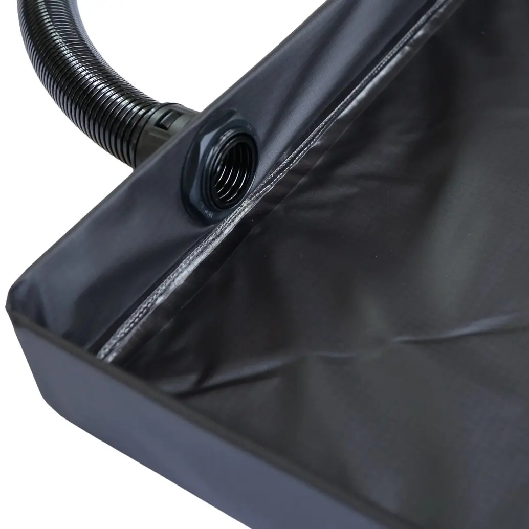 Der leichte, faltbare Duschboden (1,5 kg) passt perfekt zum Duschzelt Horizon. Er verhindert Wasseransammlungen und Matsch, indem das Duschwasser über ein Ablassrohr gezielt nach außen geleitet wird. Ideal für den mobilen Einsatz mit Wassersystem – kompakt verstaubar und inklusive Schlauch und Schutztasche.