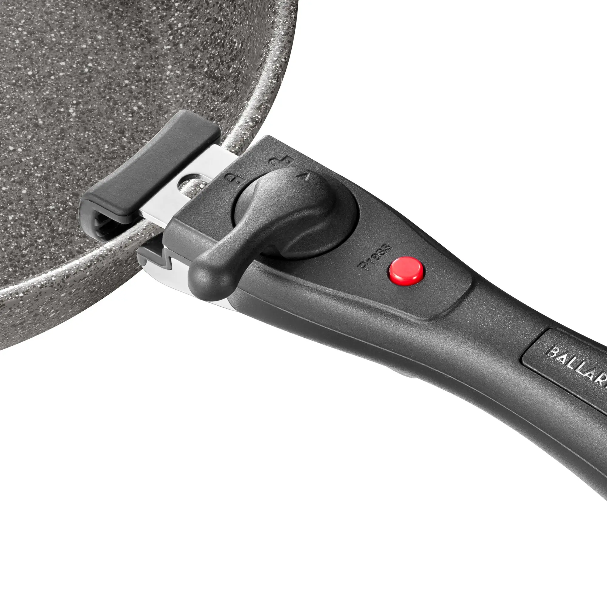 BALLARINI Torre macht das Kochen mit seiner langlebigen Ceraforce® Granitium Keramikbeschichtung und den innovativen abnehmbaren Griffen besonders leicht. Stapeln Sie einfach Ihr Kochgeschirr und befestigen Sie den Griff mit einem Klick.