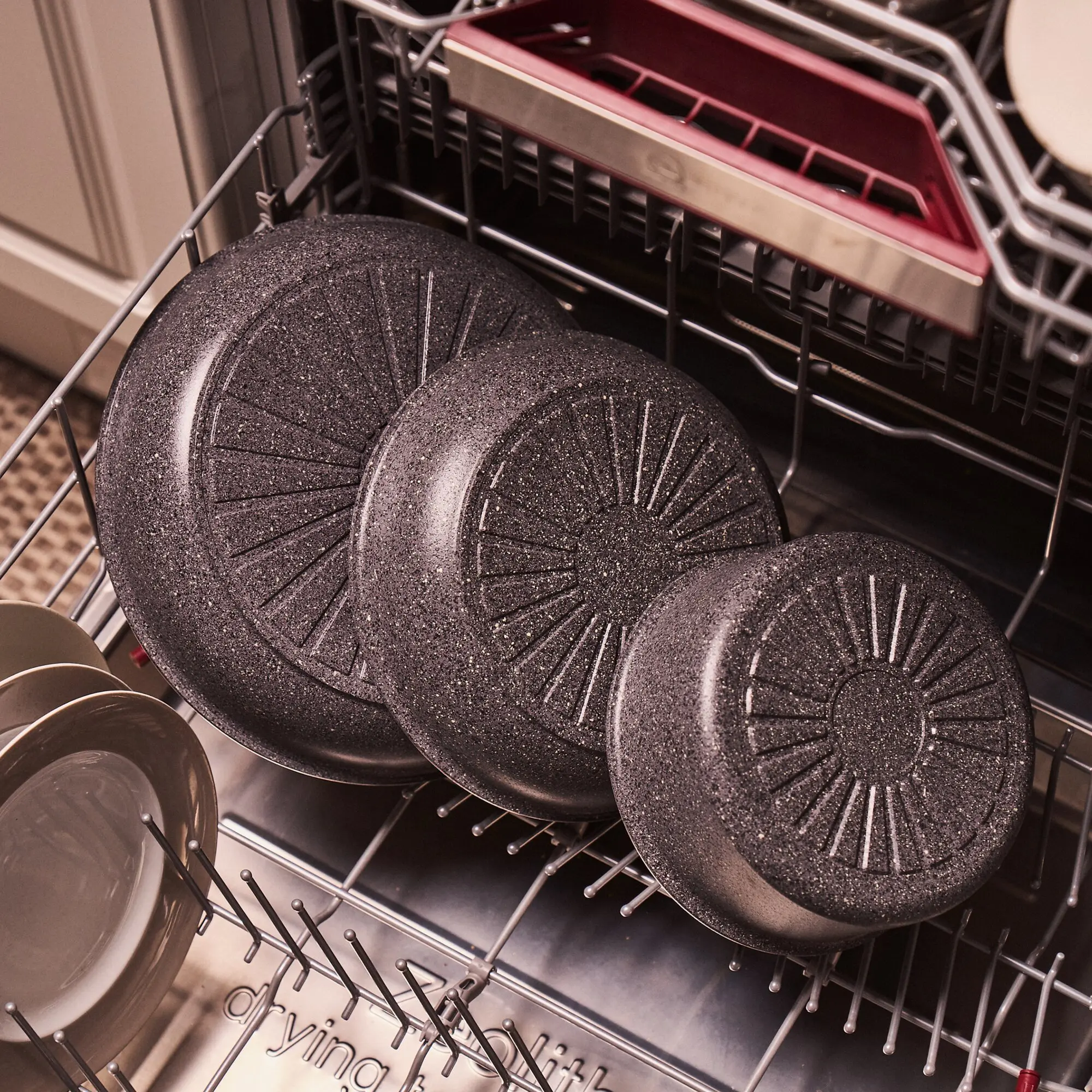 Das BALLARINI Torre Kochgeschirr lässt sich dank abnehmbarem Griff perfekt stapeln. So schaffen Sie mehr Ordnung und benötigen weniger Platz in Ihrer Küche.