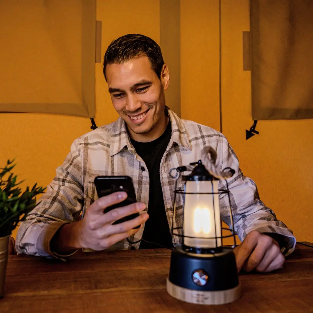 Die LED-Lampe mit Lithium-Akku (2,5 Ah, 3,7 V) bietet mit 350 Lumen Helligkeit und bis zu 75 Stunden Leuchtdauer zuverlässiges Licht für Outdoor-Aktivitäten. Stufenlos dimmbar und mit Farbtemperaturen von 2700 bis 6500 K einstellbar, schafft sie stets die passende Lichtstimmung. Dank IP44-Schutz ist sie spritzwassergeschützt und ideal für den Außenbereich. Ein Hanfseil und ein Bambussockel verleihen der Lampe natürlichen Charme. Wiederaufladbar per USB-C, ist sie perfekt für umweltbewusste Camper, die Design und Funktionalität schätzen.