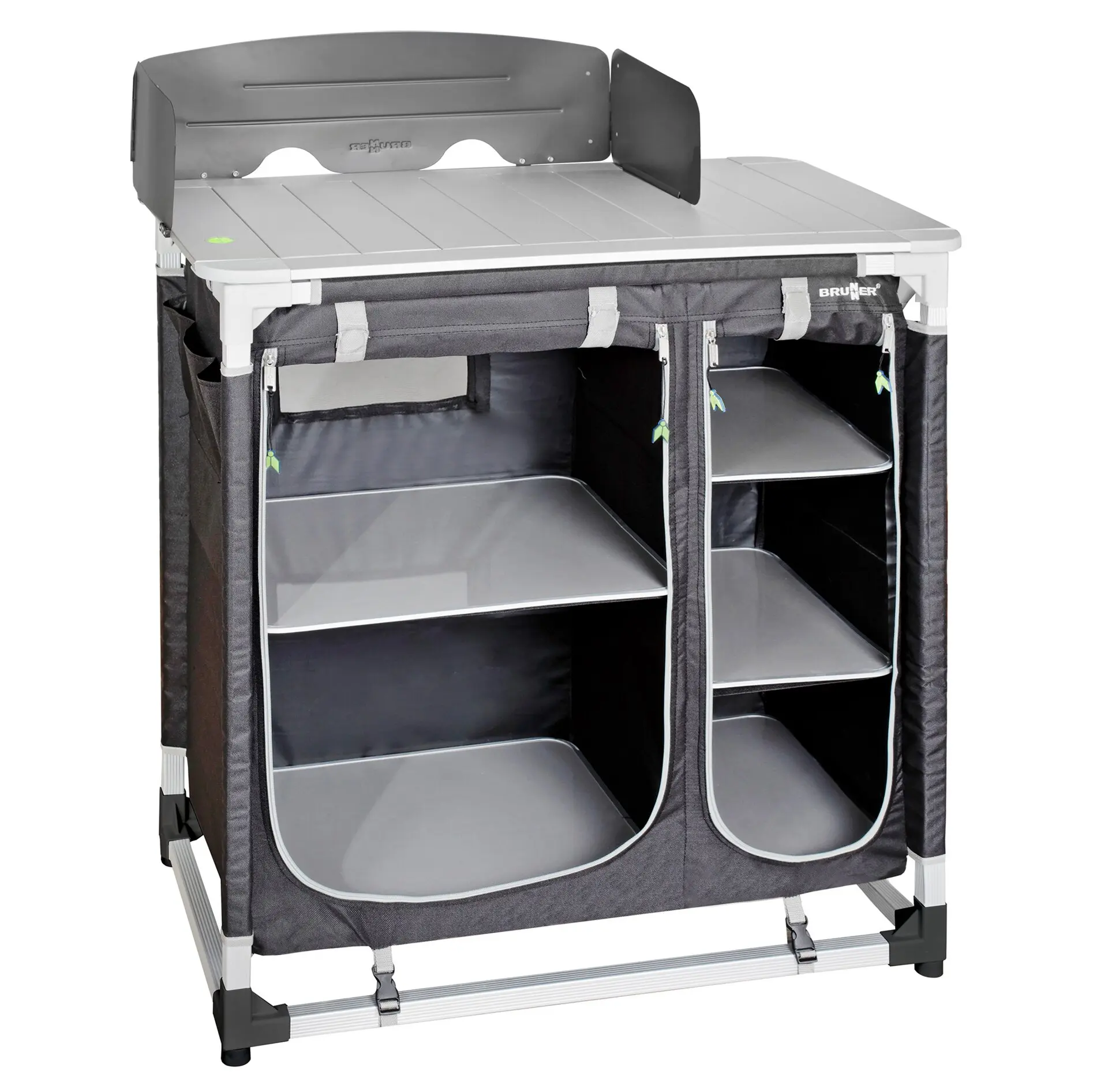 | Zusatzinformation: | Mit 5 Innenablagen und einem Windschutz aus Metall. Maße B 85 x H 90 x T 52 cm, Gewicht 9 kg. |