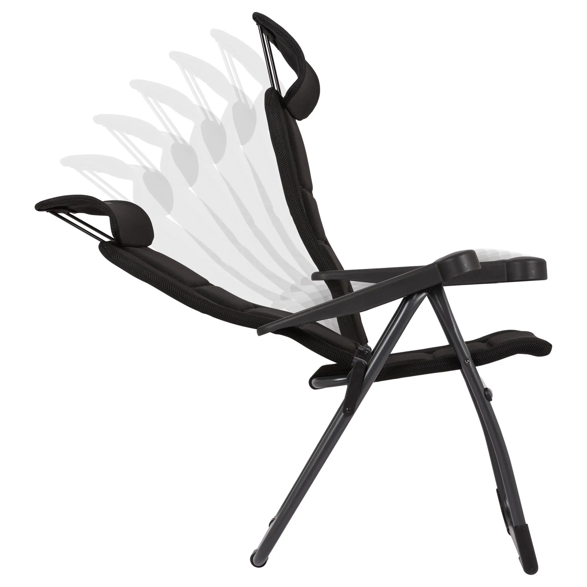 Leicht, stabil und komfortabel: Der Campingstuhl hat eine 7-fach verstellbare Rückenlehne, eine gepolsterte 3D-Bespannung mit optimaler Luftzirkulation und eine ergonomische Form. Kompakt faltbar, ideal für Reisen.