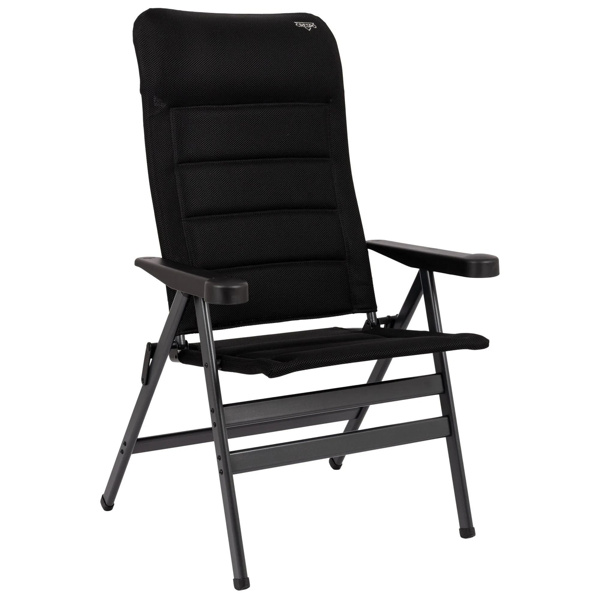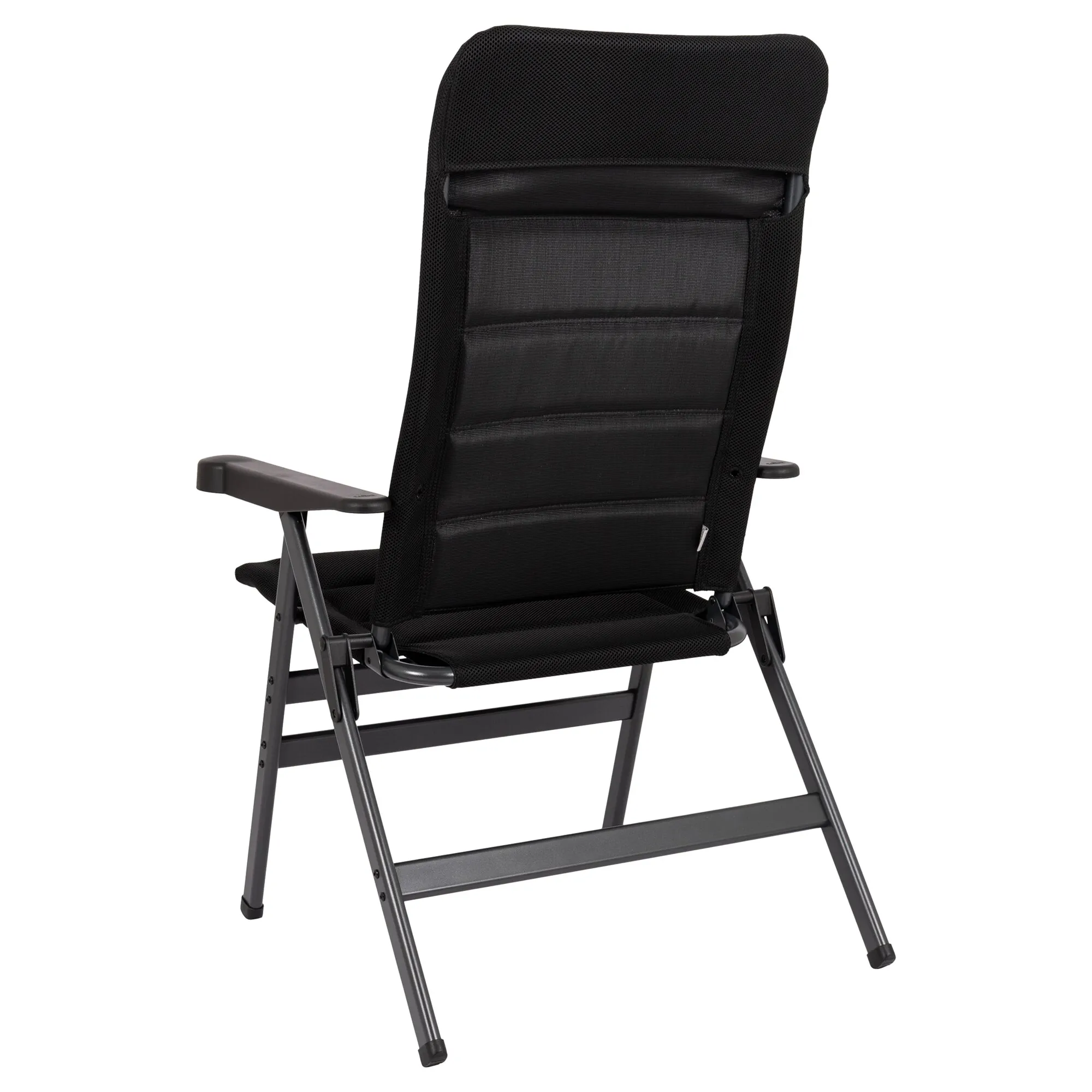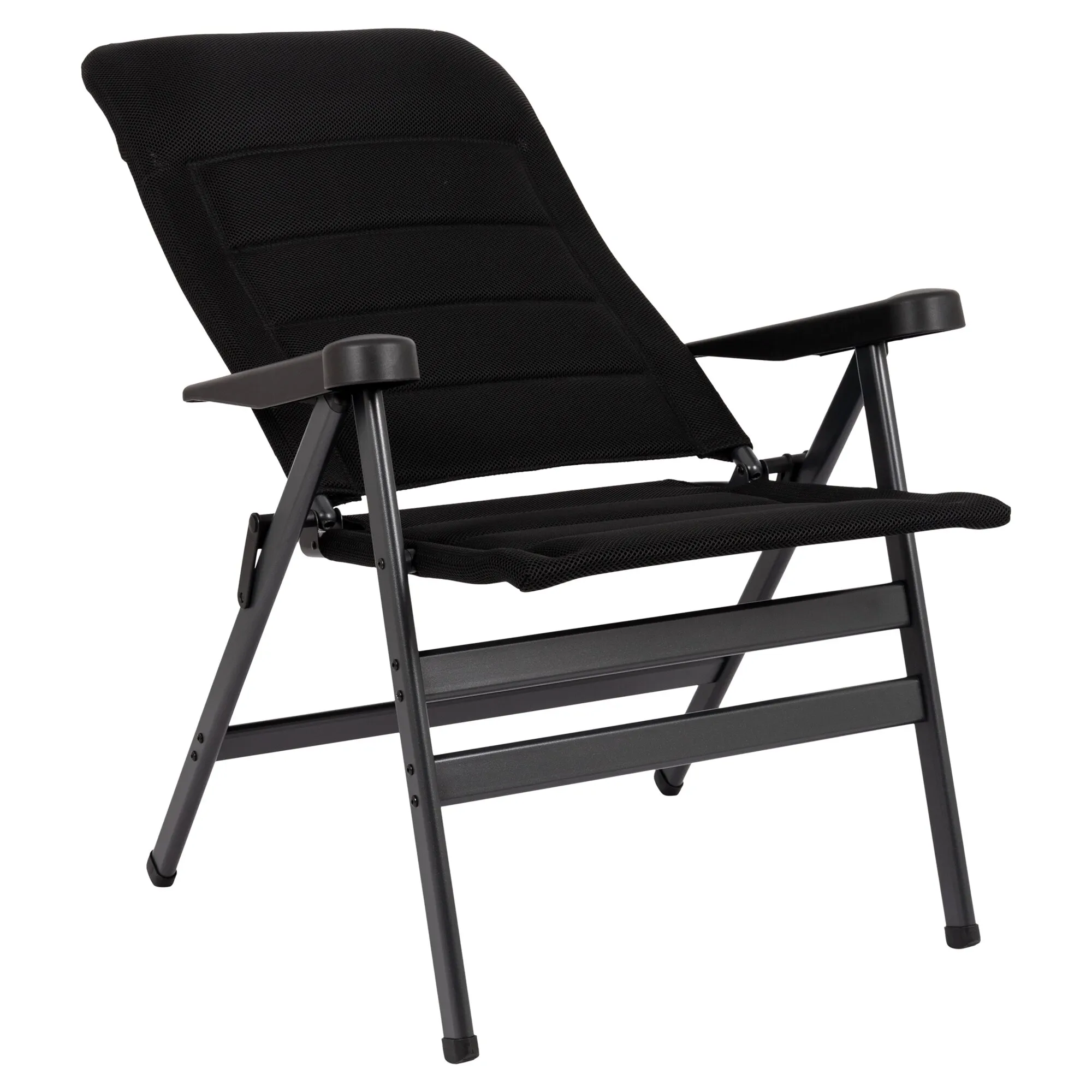 Der Campingstuhl AP/238 Air-Deluxe bietet luxuriösen Komfort für größere Personen, die Wert auf Raum und Flexibilität legen. Dank der siebenfach verstellbaren Rückenlehne passen Sie die Sitzposition ganz nach Ihren Bedürfnissen an. Die Polsterung besteht aus einem innovativen 3D-Stoff, der besonders luftdurchlässig ist. So bleibt der Stuhl angenehm kühl und trocknet schneller als herkömmliche Schaumstoffpolsterungen, da die offene Zellstruktur Feuchtigkeit effizient ableitet. Der ergonomische Stuhl mit eloxiertem H-Rahmen gewährleistet maximale Stabilität und Sicherheit. Im eingeklappten Zustand ist er zudem sehr kompakt und leicht transportierbar.