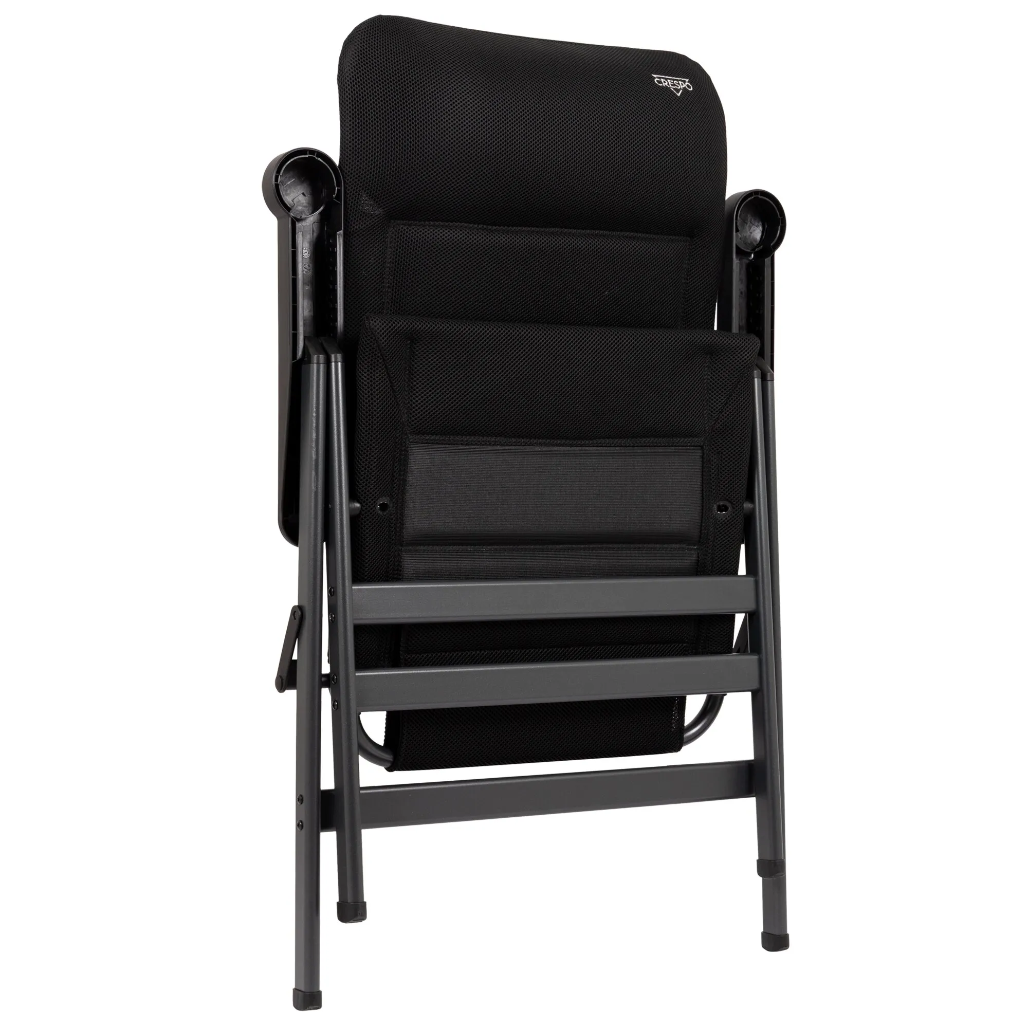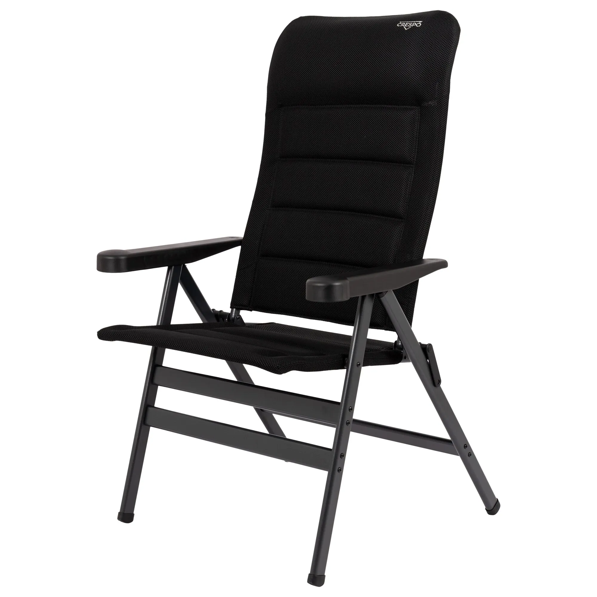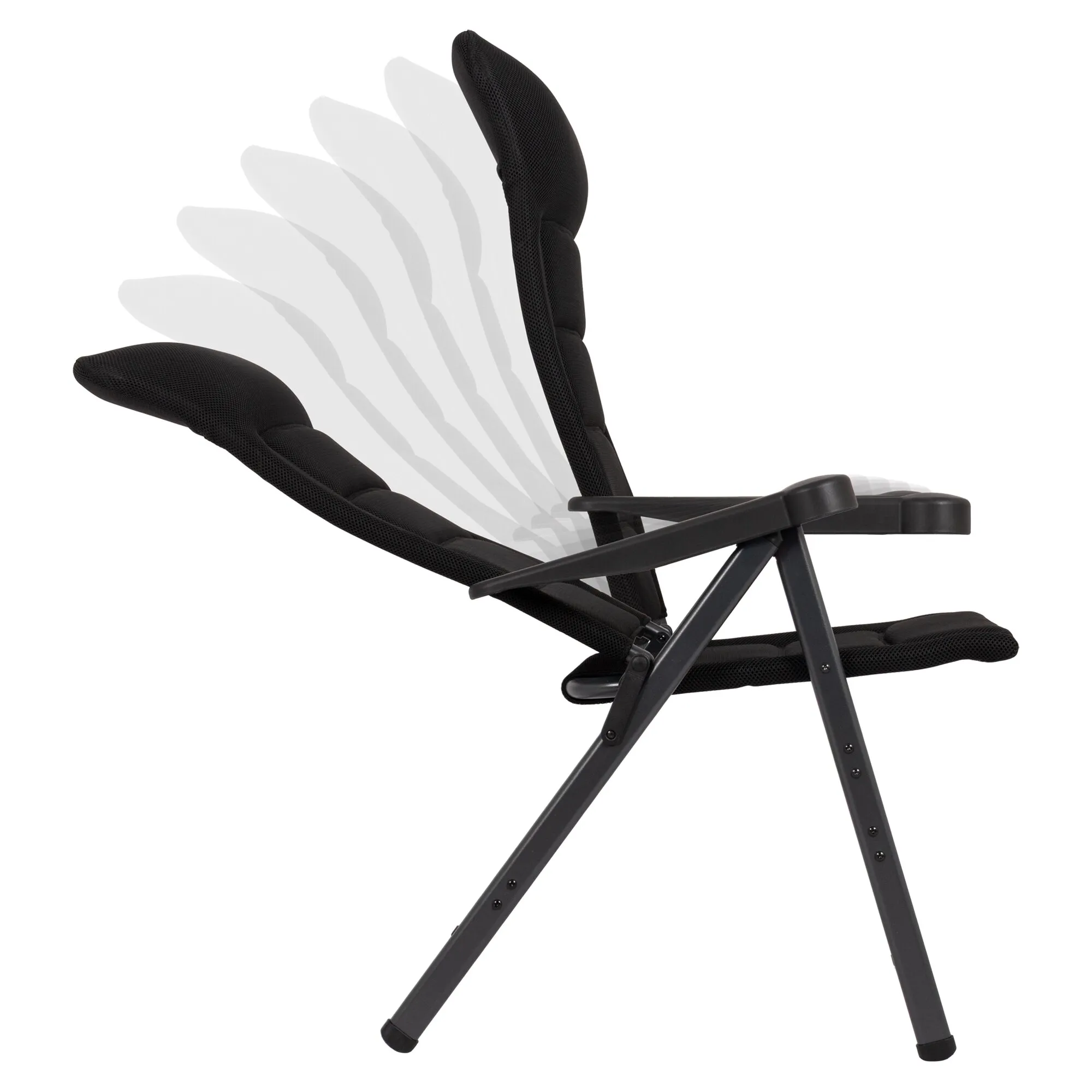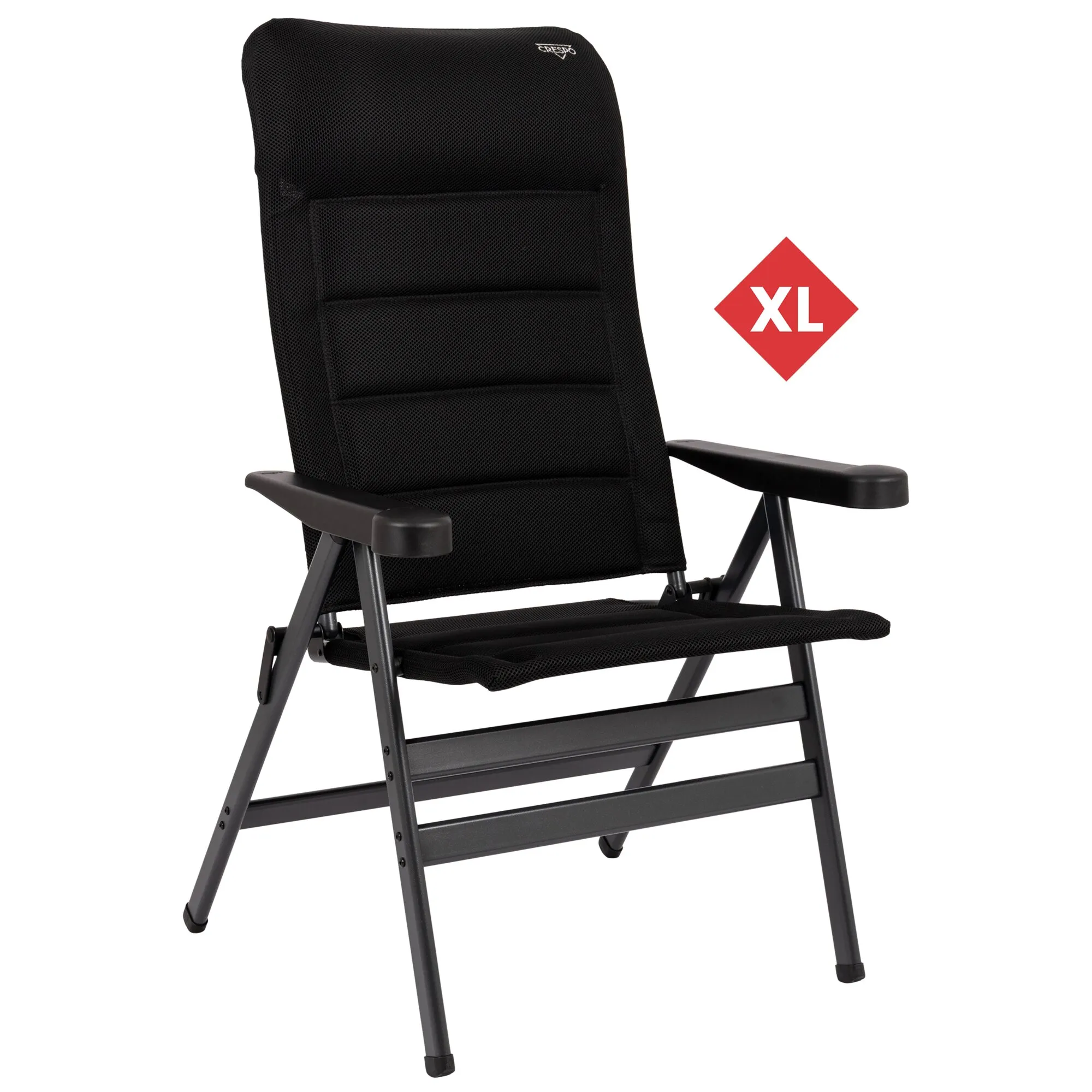 Der Campingstuhl AP/238 Air-Deluxe bietet luxuriösen Komfort für größere Personen, die Wert auf Raum und Flexibilität legen. Dank der siebenfach verstellbaren Rückenlehne passen Sie die Sitzposition ganz nach Ihren Bedürfnissen an. Die Polsterung besteht aus einem innovativen 3D-Stoff, der besonders luftdurchlässig ist. So bleibt der Stuhl angenehm kühl und trocknet schneller als herkömmliche Schaumstoffpolsterungen, da die offene Zellstruktur Feuchtigkeit effizient ableitet. Der ergonomische Stuhl mit eloxiertem H-Rahmen gewährleistet maximale Stabilität und Sicherheit. Im eingeklappten Zustand ist er zudem sehr kompakt und leicht transportierbar.