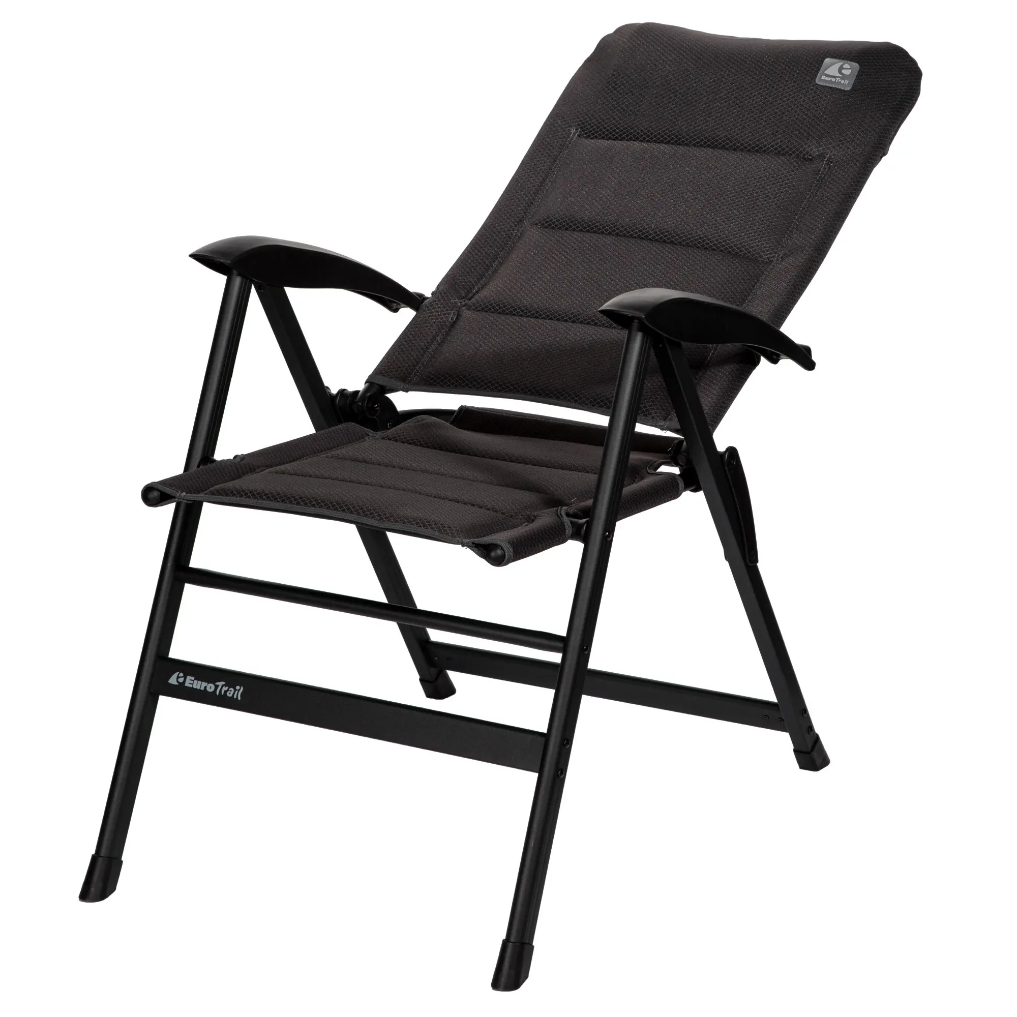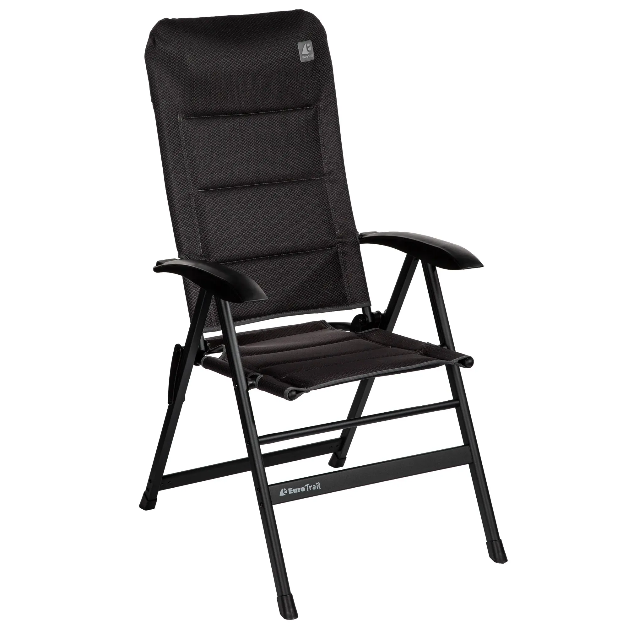 Bequemer Campingstuhl mit hoher Rückenlehne. Sechsfach verstellbares Aluminiumgestell, klein zusammenklappbar. Gepolstertes Air-Mesh-Material. Eine Fußauflage ist optional erhältlich.