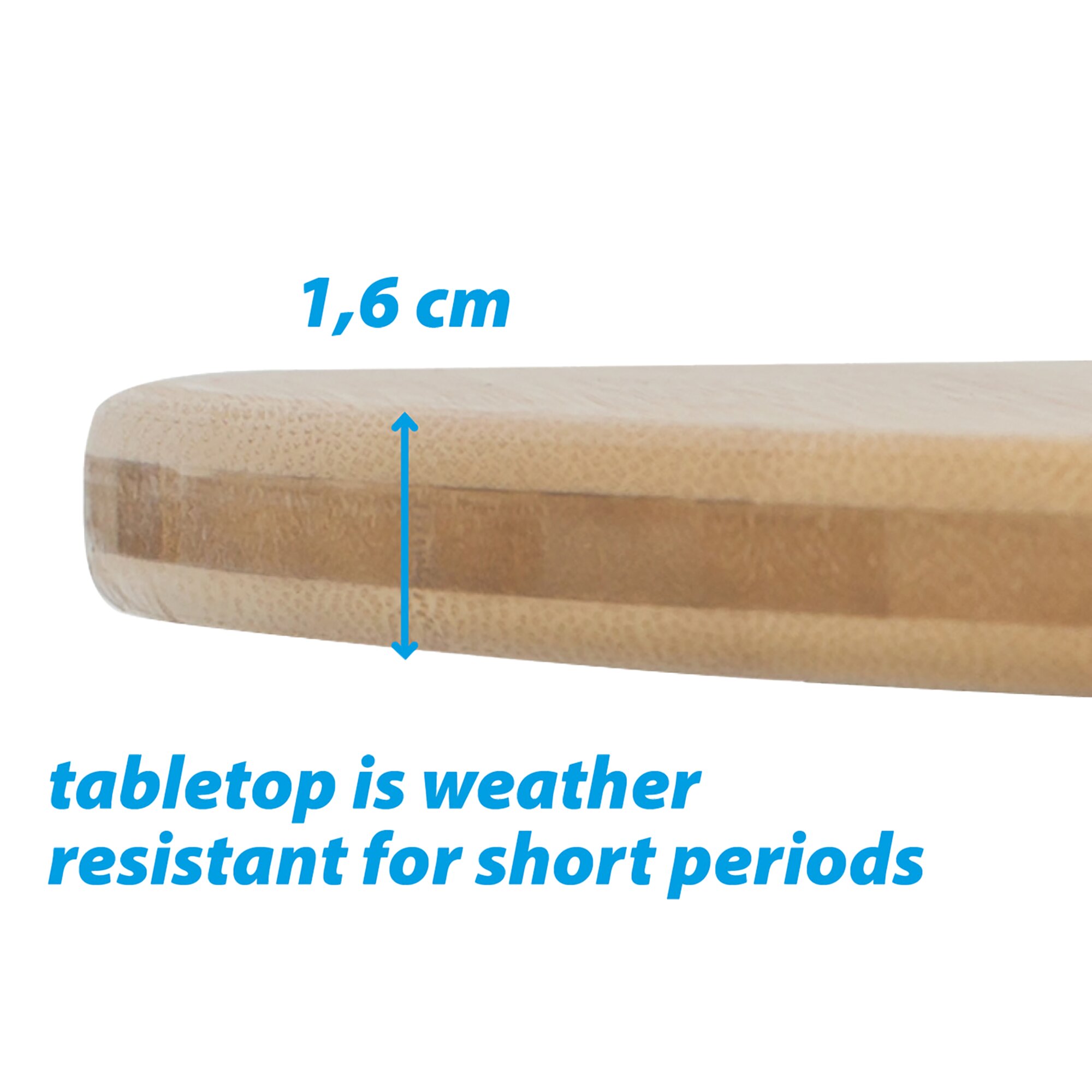 Der Campingtisch Camperking ist der ideale Begleiter für Ihre Outdoor-Abenteuer. Mit seinem klappbaren Aluminiumgestell und der witterungsbeständigen Bambus-Tischplatte bietet er eine perfekte Kombination aus Stabilität und Leichtigkeit. Dank der Niveauregulierung steht er auch auf unebenem Boden sicher. Der Tisch lässt sich kompakt zusammenklappen und verfügt über einen praktischen Tragegriff, wodurch er leicht zu transportieren ist. Der Tisch in der Breite 100 cm ist faltbar.