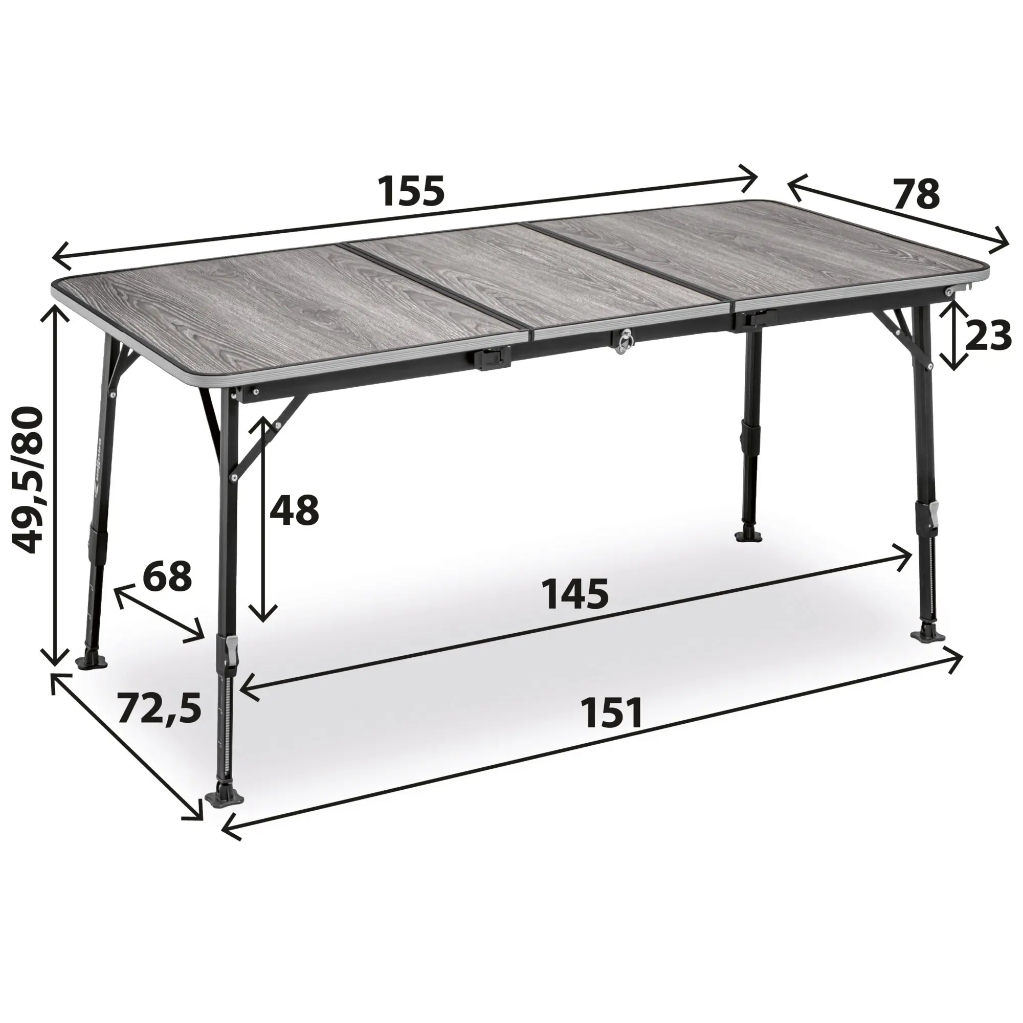 Der Elùtop ComPack Extension ist eine platzsparende Outdoor-Lösung mit ultraleichter Wabenplatte im Eichendesign. Die ausziehbare Tischplatte lässt sich von 116 cm auf 155 cm erweitern, während die Einlegeplatte als Beistelltisch dient. Die klappbare Konstruktion, höhenverstellbare Beine, ein Aufbewahrungsnetz und die Tragetasche machen ihn ideal für Garten, Terrasse oder Camping.