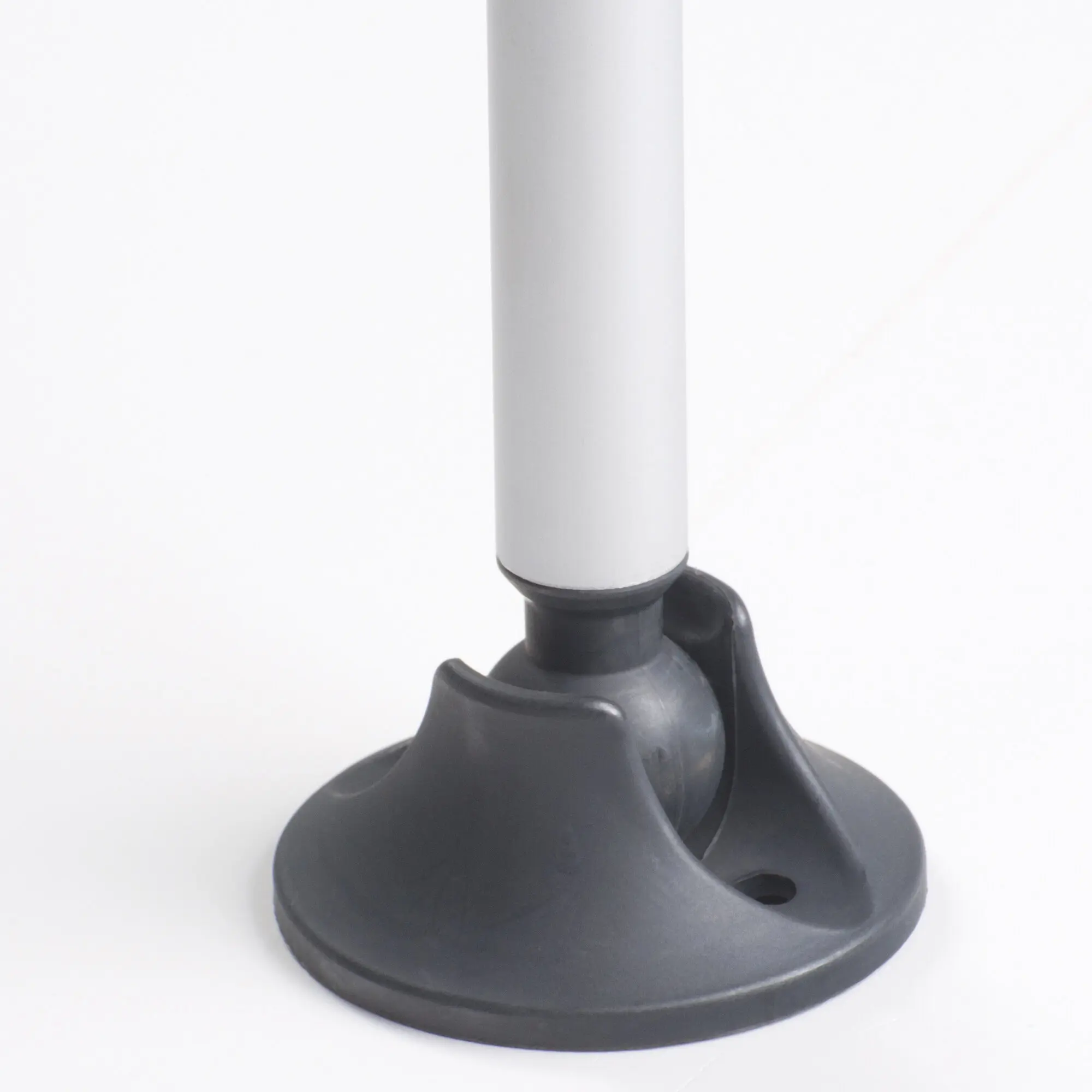 Mit seinem Gestell aus Aluminium besticht der Tisch als Leichtgewicht mit hoher Stabilität. Große, kugelgelagerte Fußteller ermöglichen einen sehr guten Stand auch in ungleichmäßigem Gelände. Alle vier Tischbeine sind höhenverstellbar. Die Tischplatte ist wetterfest und hitzebeständig.