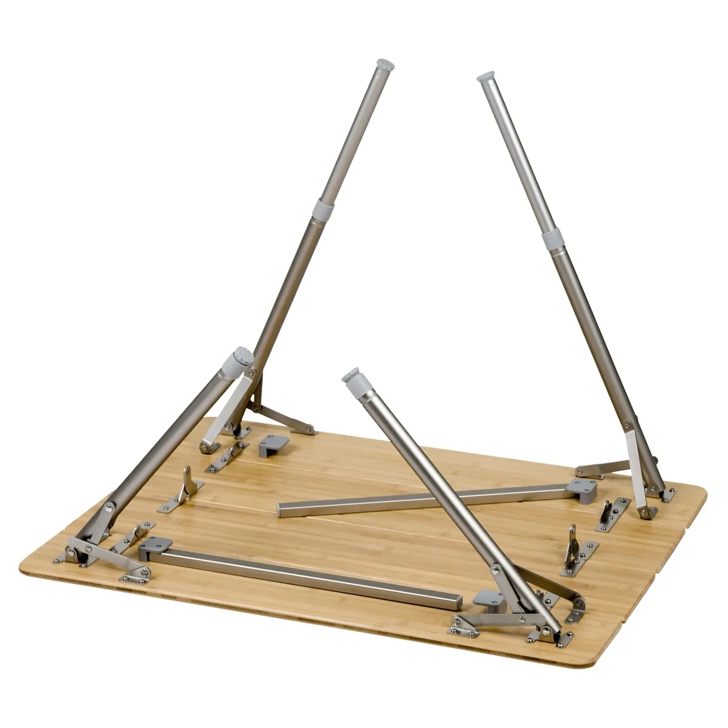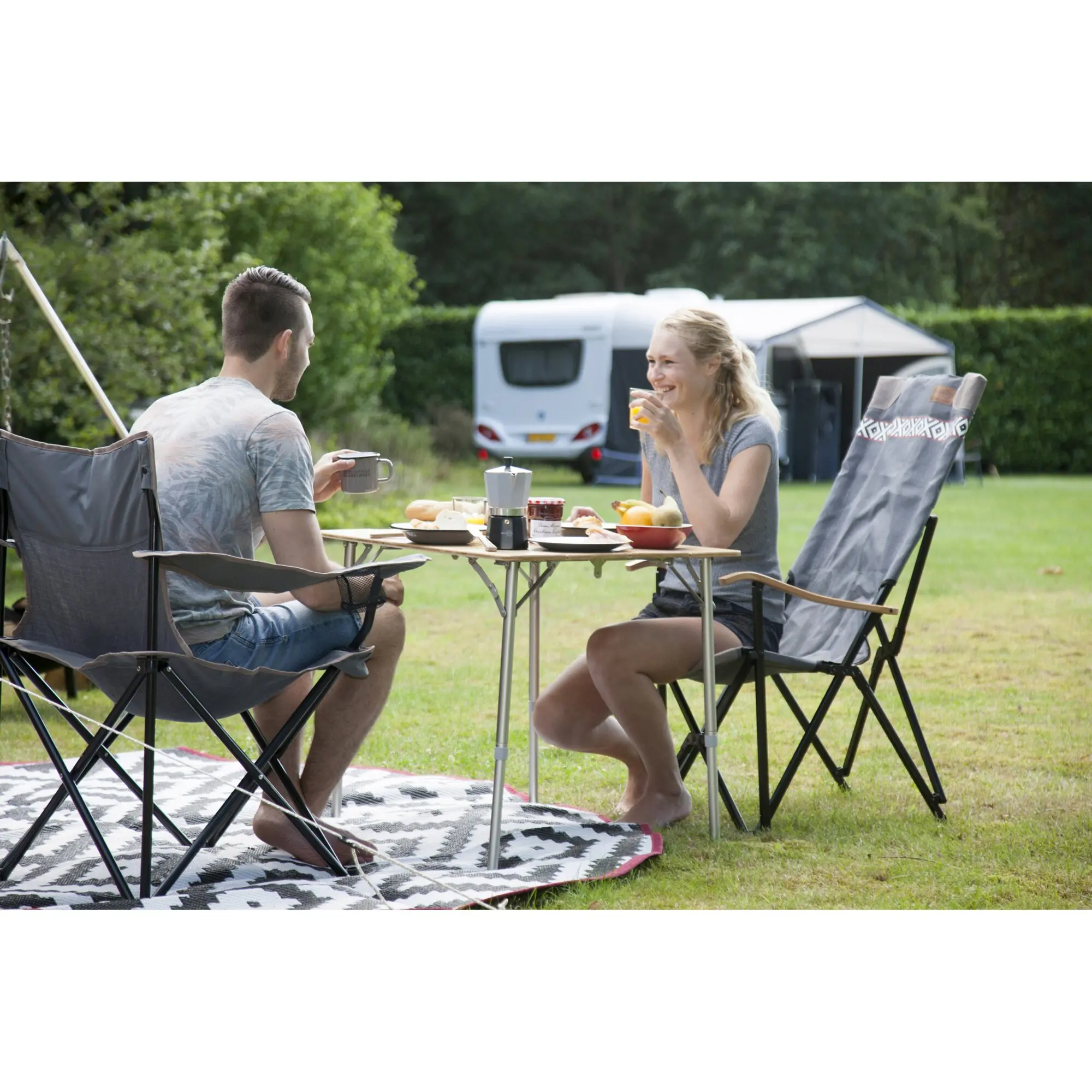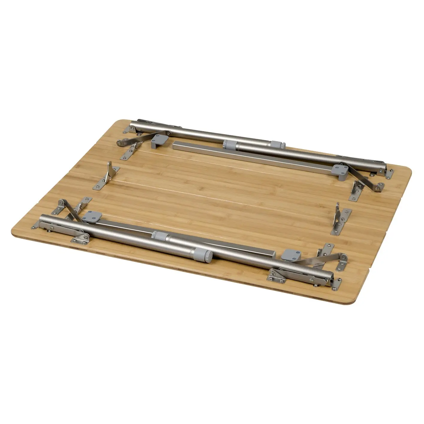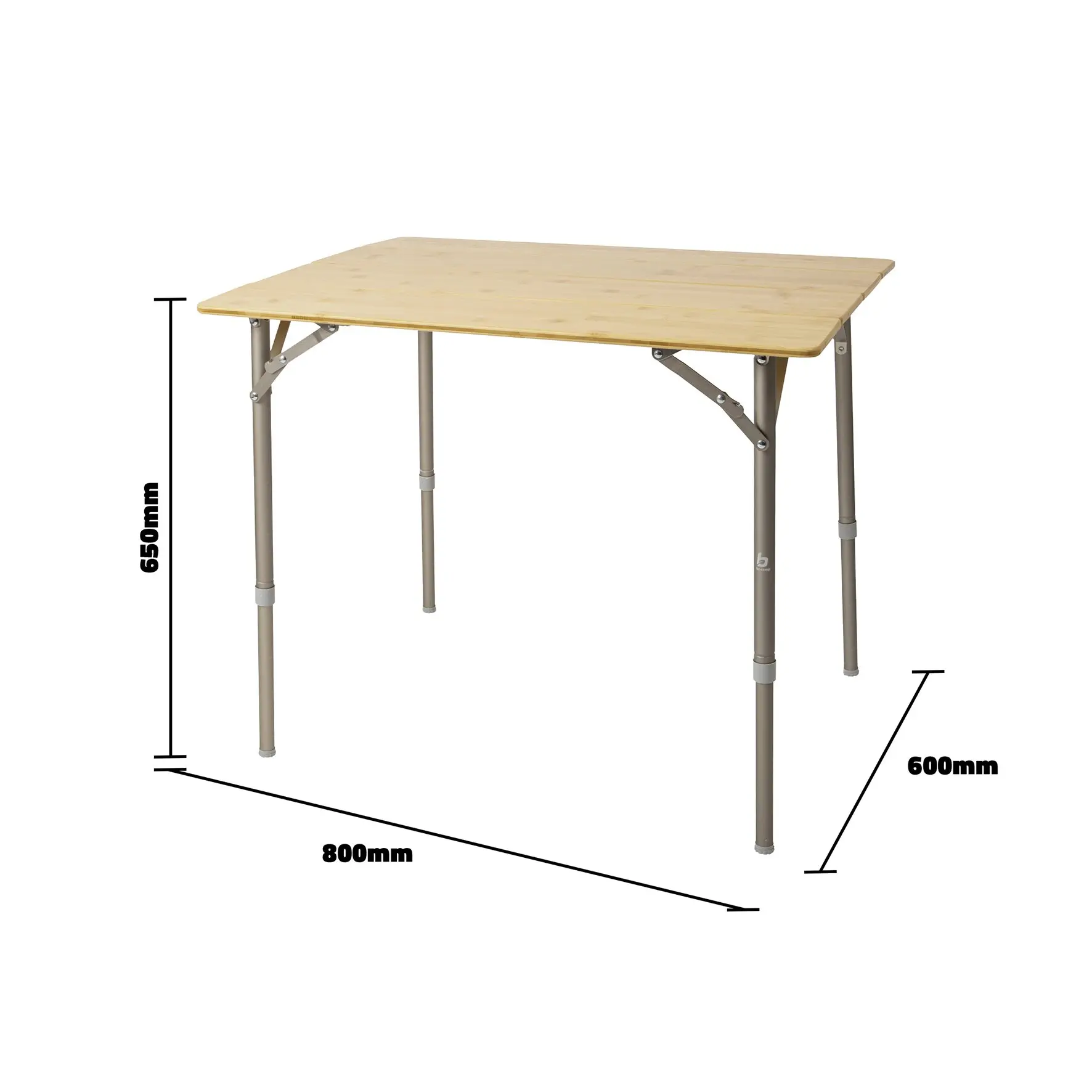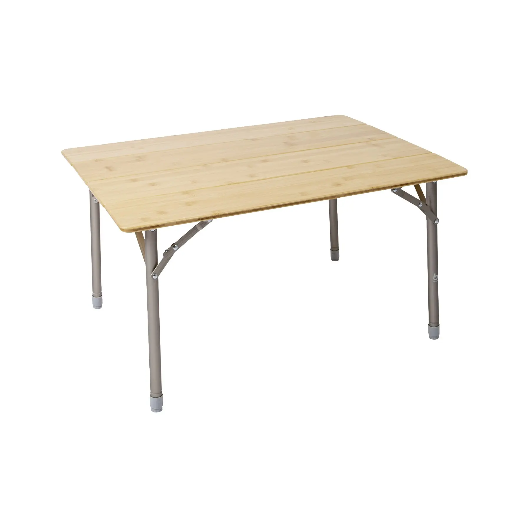 Der höhenverstellbare Campingtisch Suffolk zeichnet sich durch seine wasserfeste Tischplatte aus Bambuslamellen und die vier teleskopisch verstellbaren Tischbeine aus Aircraft-Aluminium aus. Zusammengeklappt benötigt der Tisch nur wenig Platz. Inklusive Tragetasche.