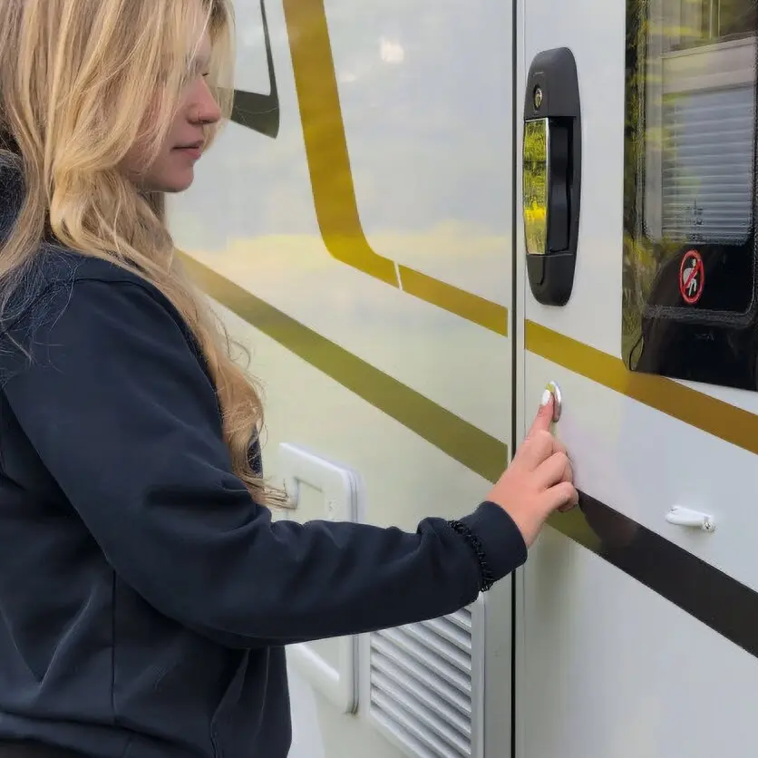 Der CampLock Fingerprint-Sensor ermöglicht das Ver- und Entriegeln der Aufbautür per Fingerabdruck – ohne Schlüssel oder Fernbedienung. Er ist exklusiv für Hartal Türen mit Zentralverriegelung erhältlich. Gleichzeitig wird das THITRONIK® Alarmsystem automatisch scharf oder unscharf geschaltet. So verbindet der CampLock Fingerprint-Sensor Komfort, Sicherheit und moderne Technik in einem System.