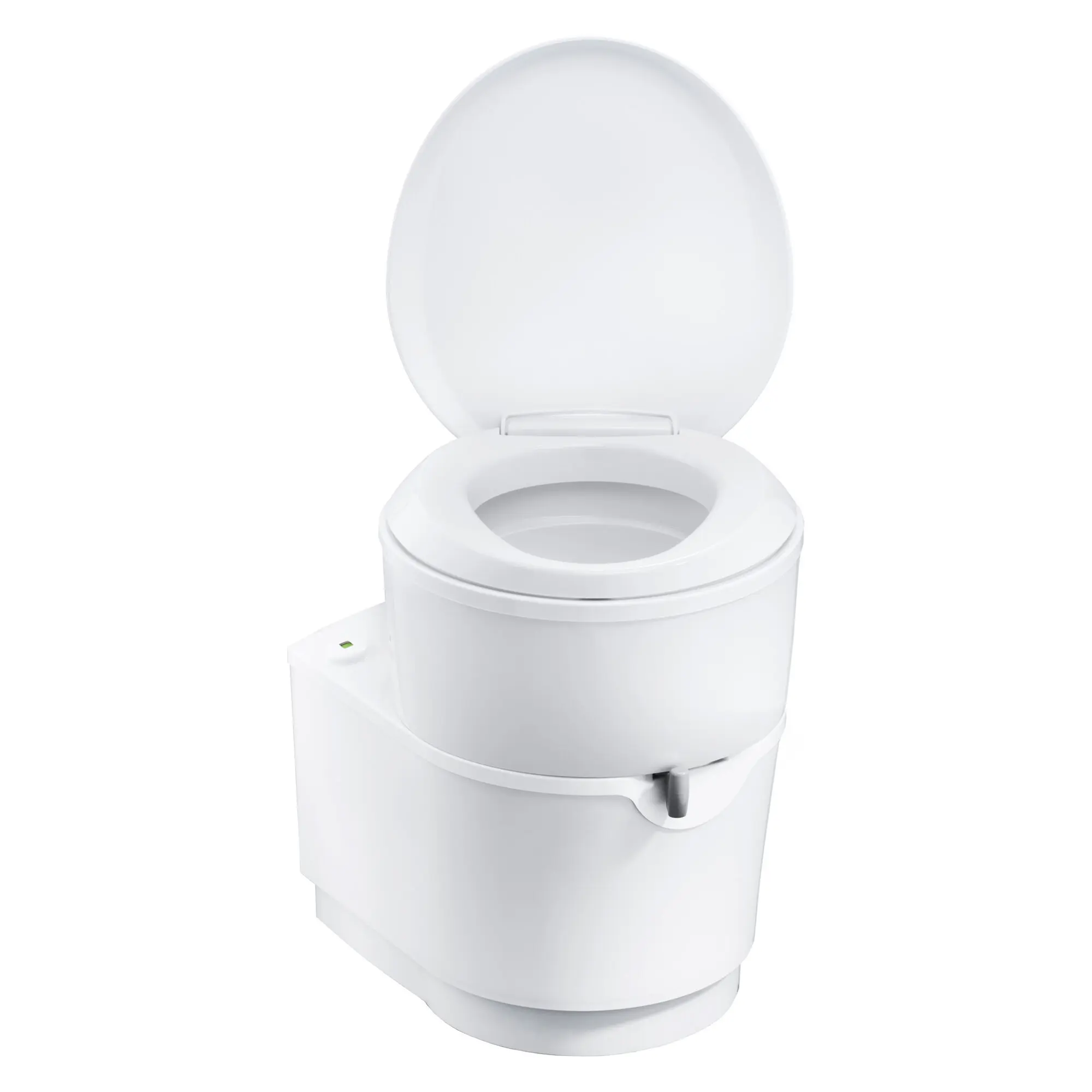 Die Cassettentoilette für den Einbau besteht aus zwei Teilen: einer dauerhaft installierten Toilette und einem herausnehmbaren Fäkalientank. Eine intelligente Anzeige teilt Ihnen mit, wann der Tank geleert werden muss. Sie können den Tank über eine Serviceklappe an der Außenseite des Fahrzeugs bequem entnehmen. Es stehen Ihnen verschiedene Modelle zur Auswahl. Die Position der Serviceklappe 3 (separat erhältlich) kann sowohl vertikal als auch horizontal sein.