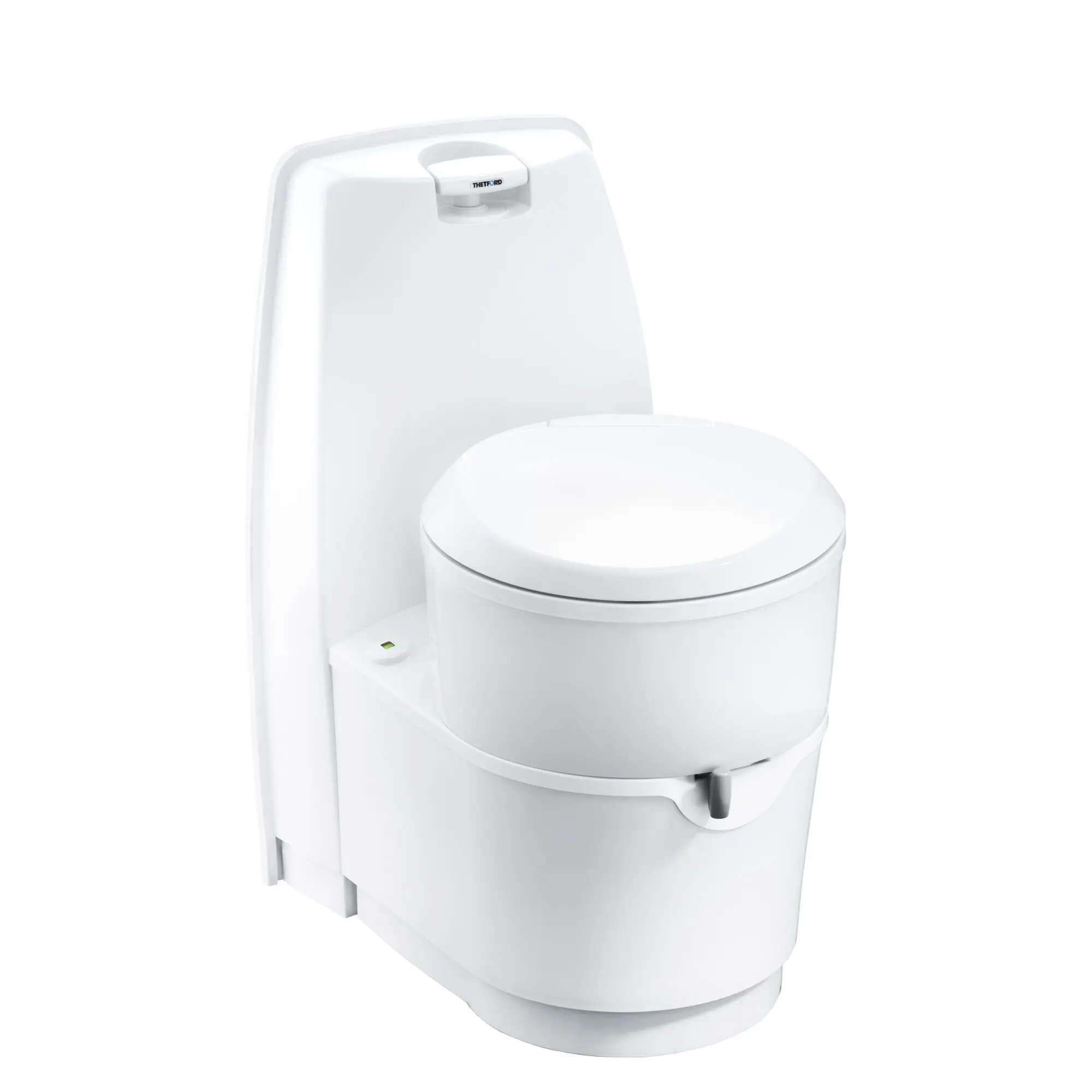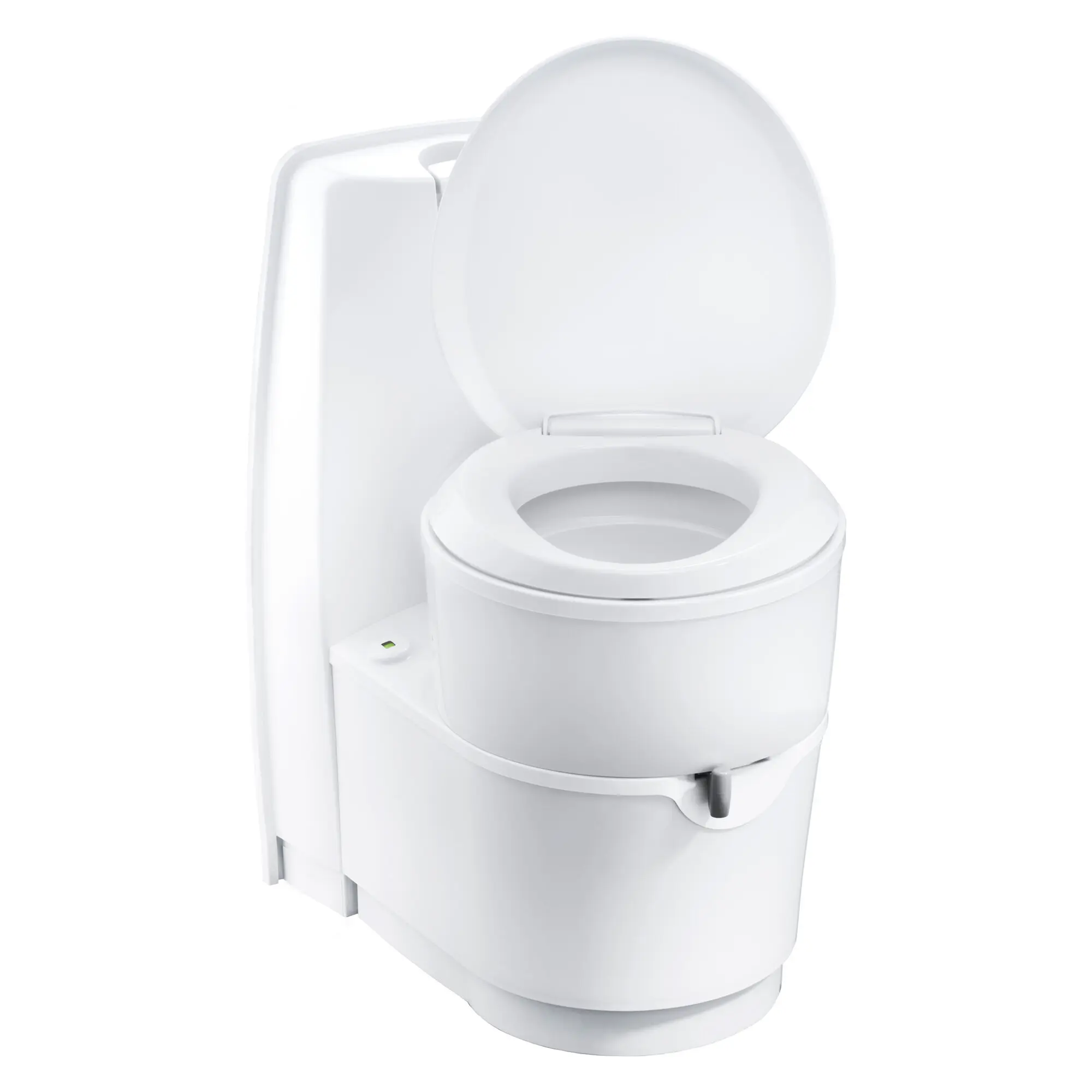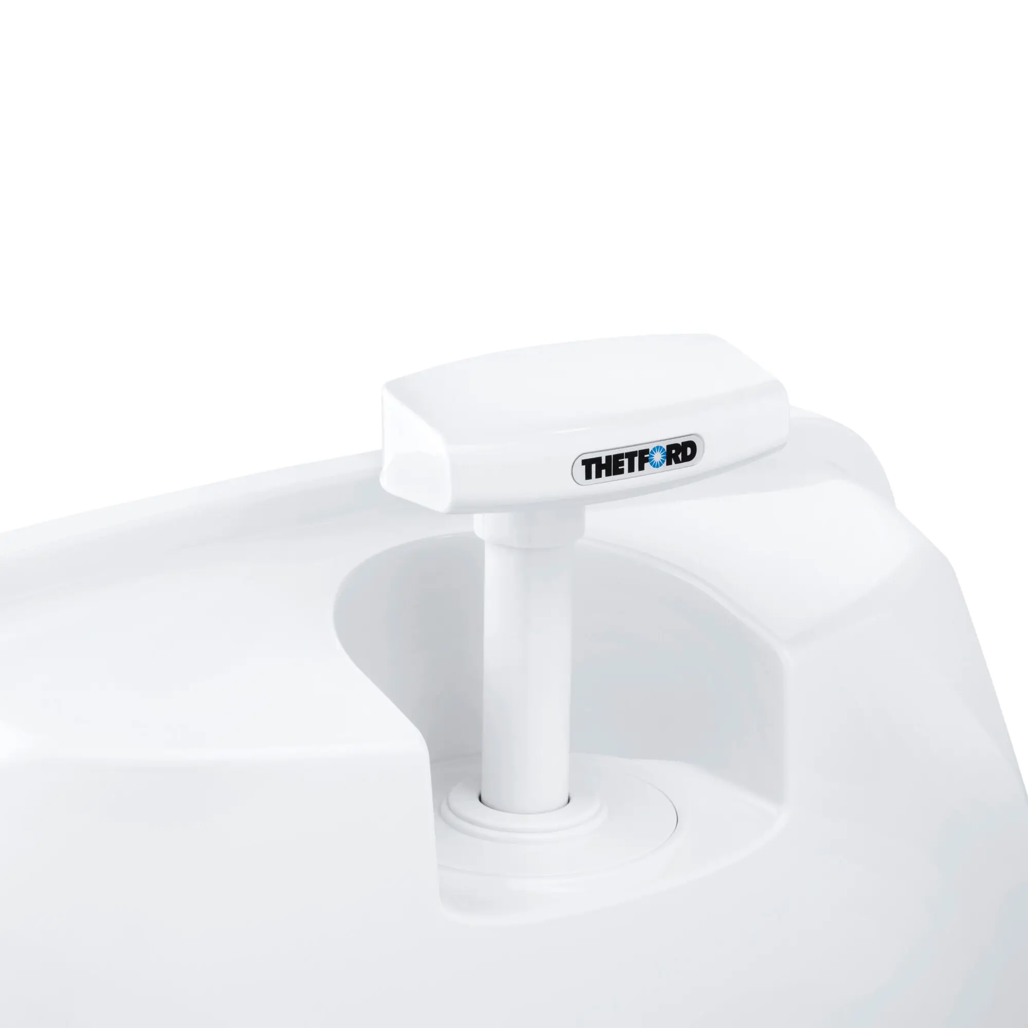 Die Cassettentoilette für den Einbau besteht aus zwei Teilen: einer dauerhaft installierten Toilette und einem herausnehmbaren Fäkalientank. Eine intelligente Anzeige teilt Ihnen mit, wann der Tank geleert werden muss. Sie können den Tank über eine Serviceklappe an der Außenseite des Fahrzeugs bequem entnehmen. Es stehen Ihnen verschiedene Modelle zur Auswahl. Die Position der Serviceklappe 3 (separat erhältlich) kann sowohl vertikal als auch horizontal sein. Die im Lieferumfang enthaltene Spülknöpfe sind in der Console eingebaut.