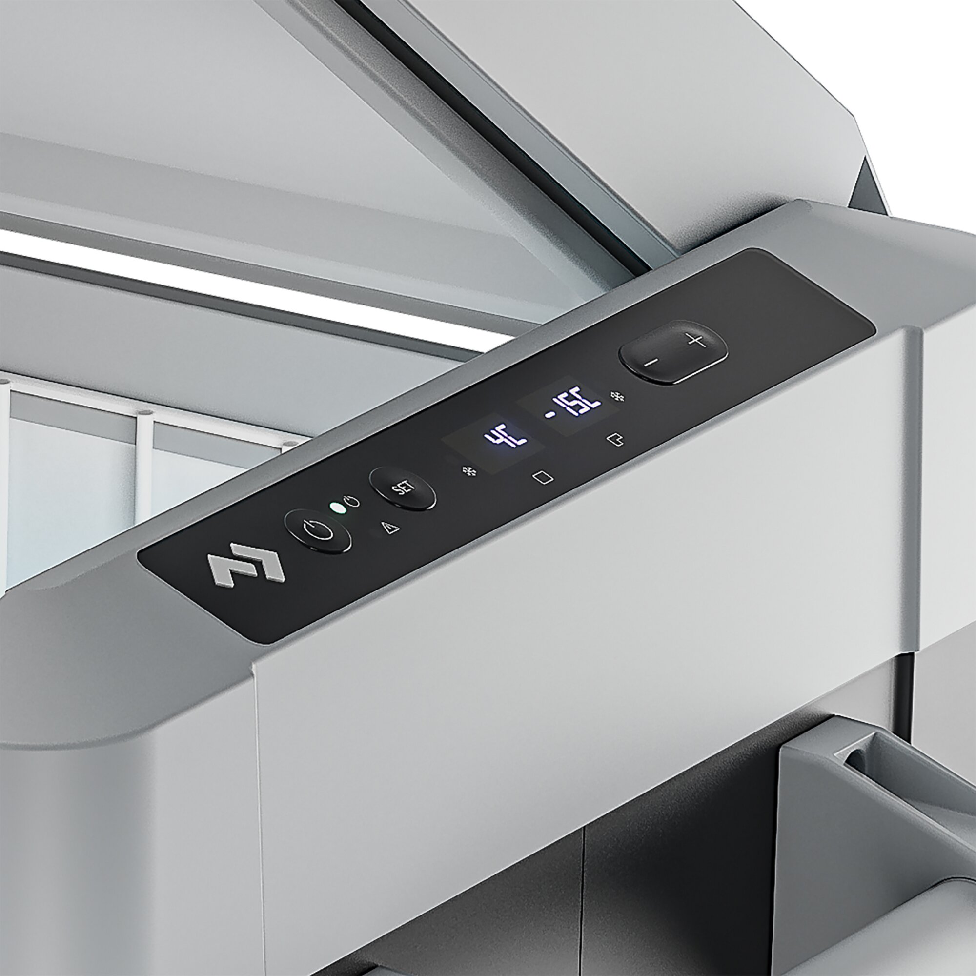 Die größeren CFF 20, CFF 35, CFF 45 und auch die CFF 70DZ sind mit abnehmbarem Deckel und stabilen Tragegriffen ausgestattet. Besonders die CFF 70DZ hat ein deutlich größeres Fassungsvermögen. Sie verfügt über 2 getrennt regelbare Kühlzonen und 2 große Korbeinsätze für flexiblen Stauraum. Die CFF 35 und CFF 45 besitzen einen doppelseitigen Deckel, der den leichten Zugang zu beiden Seiten ermöglicht. Alle Geräte erreichen auch bei hohen Außentemperaturen eine sehr gute Gefrier- und Kühlleistung. Sie halten eine Innentemperatur von -18 °C bei Umgebungstemperaturen von bis zu +32 °C. Die Temperatur kann zwischen +20 und -18 °C geregelt werden.
