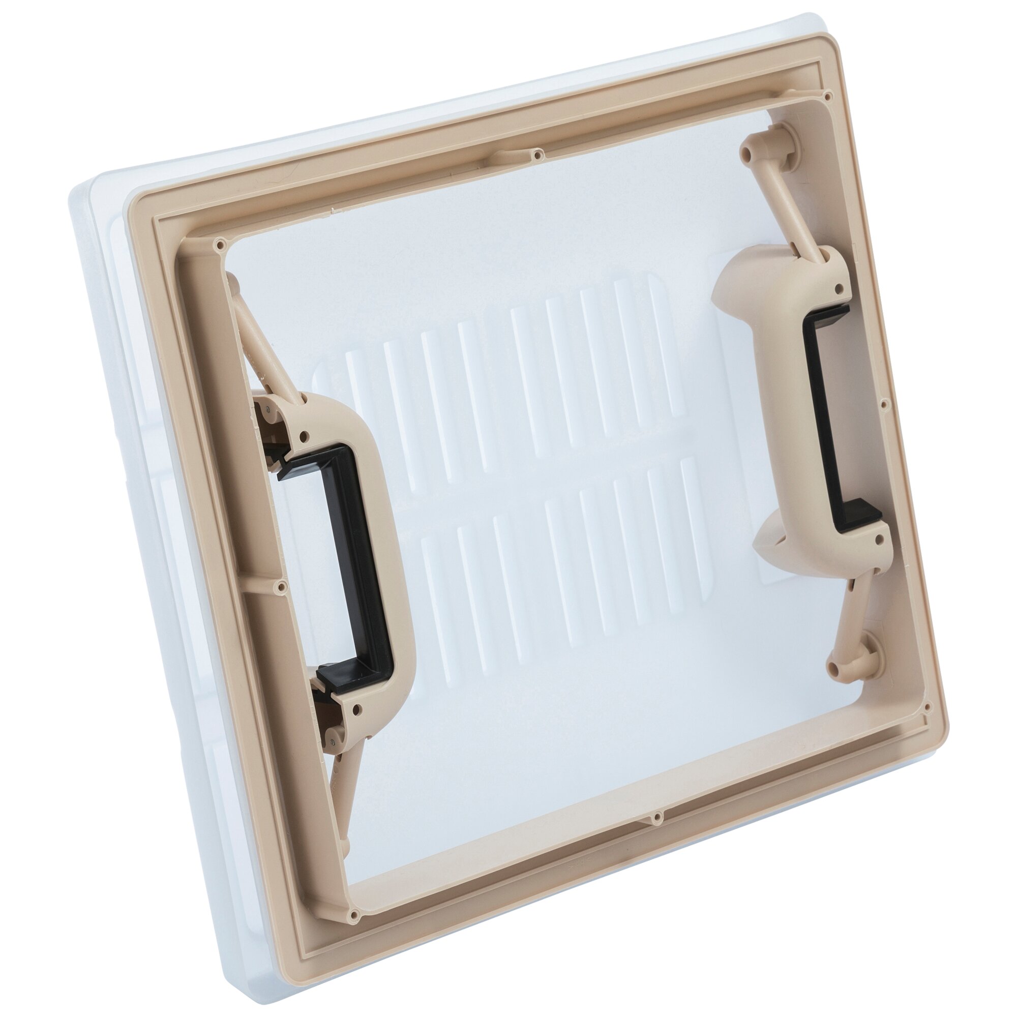 Klassische Milchglashauben mit Teleskopaufstellern, 4-seitig aufstellbar, ohne Lüftungsgitter, Dauerlüftung zwischen Hauben.