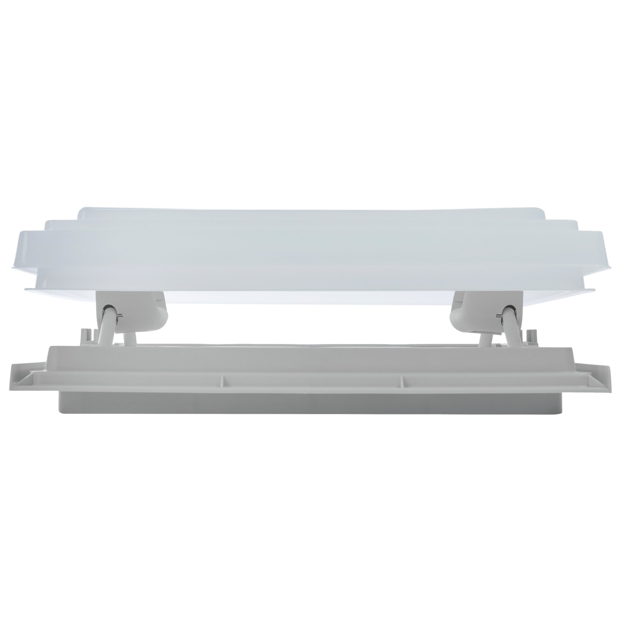 Große Haube aus Polypropylen-Milchglas, Innenrahmen mit integriertem Kombirollo (Fliegengitter und Verdunkelungsrollo), vierseitig aufstellbare Teleskopaussteller mit Verriegelung, abklappbarer Insektenschutzrahmen. Inklusive Fliegengitter und Verdunkelung – für erholsames Reisen mit Durchblick und Schutz.