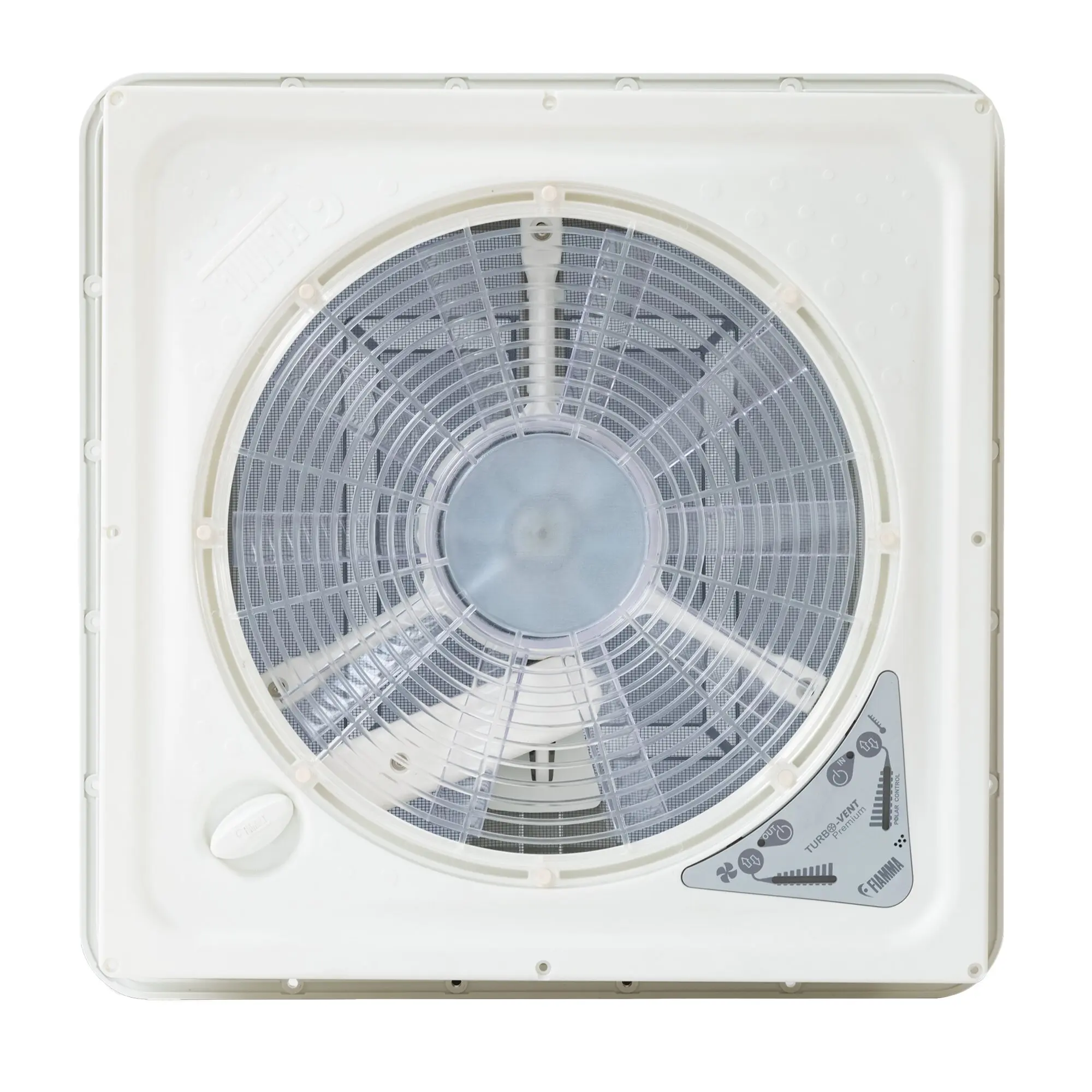 Ausstellbare Dachhaube mit Schiebeöffnung, welche von allen Seiten geöffnet werden kann. Serienmäßig mit Verdunkelungsrollo und Moskitonetz. Die Außenschicht der Verdunkelung ist mit hitzeabweisendem Aluminium beschichtet. Zwangsentlüftung stets garantiert. Wind- und regenfest. Für Turbo Kit geeignet. Rahmen: in neutralem Weiß; Haube: weiß oder crystal. Maximale Belüftung: 150 cm².