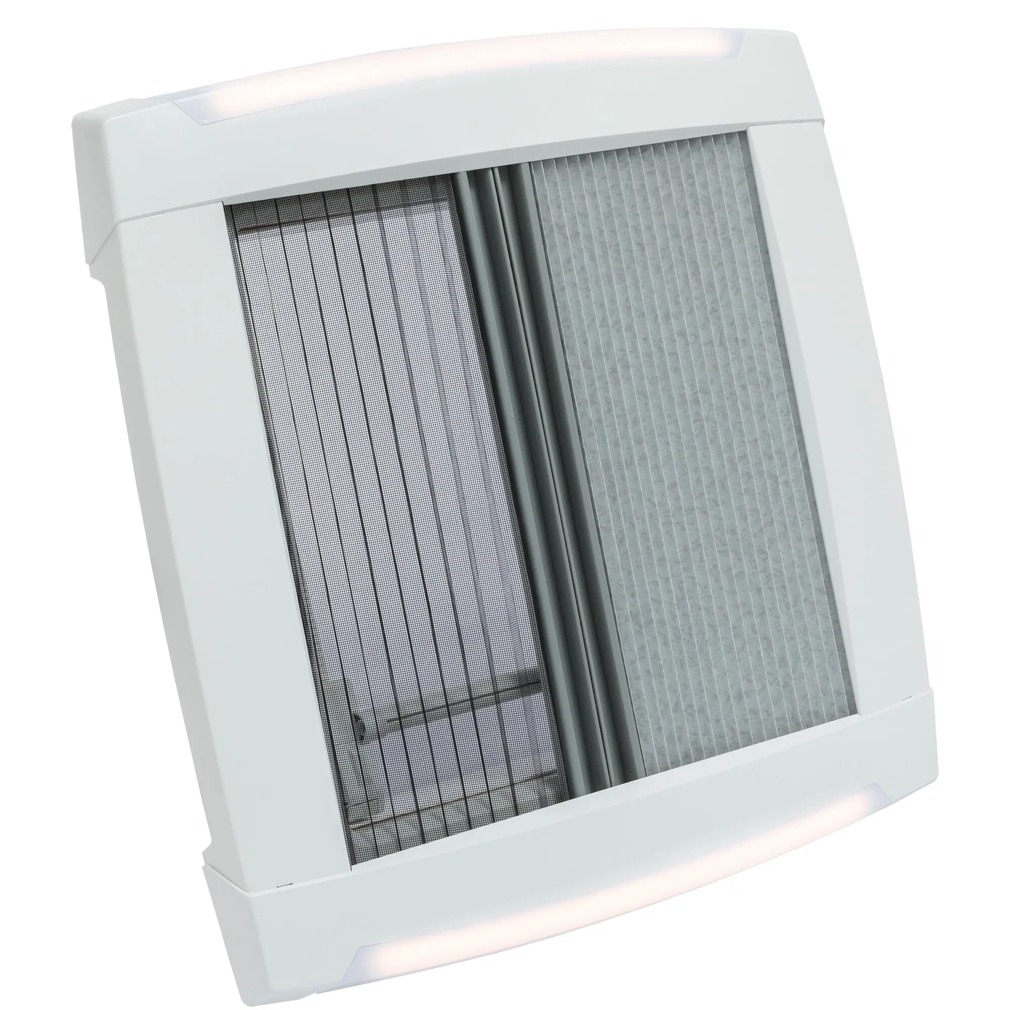Rauchglas-Dachhaube mit Doppelverglasung und ansprechendem Innenrahmen mit Doppelplissee.