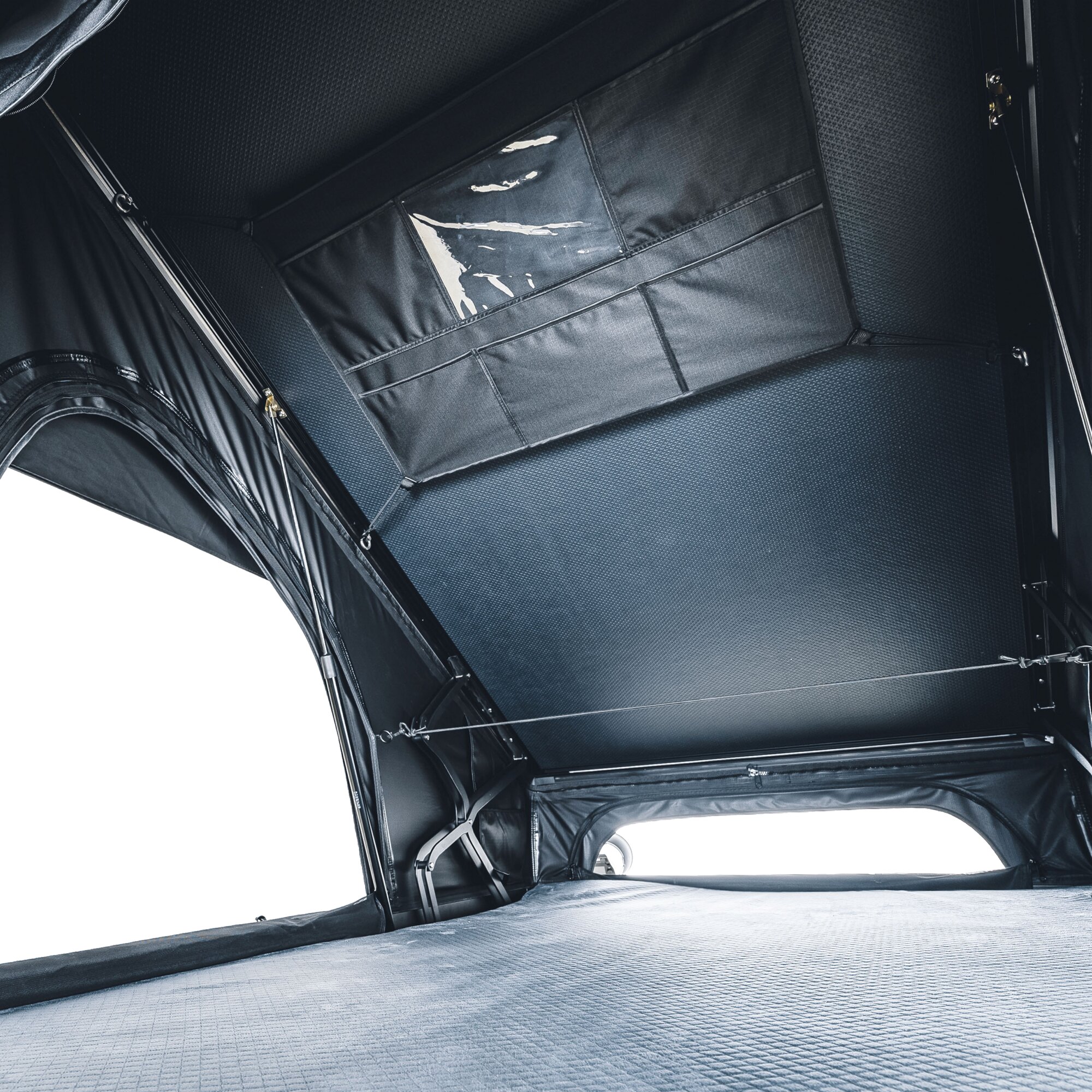 Dieses Dachzelt passt auf Fahrzeuge mit einer Dachlast von mindestens 80 kg/94 kg je nach Größe. Mit robuster Aluschale, patentiertem Scherensystem für zusätzlichen Innenraum und 5 cm dicker Schlafmatte mit Baumwollbezug. Inkl. LED-Lichtleiste, verschließbaren Fenstern mit Belüftungsgaze, Innentaschen und äußerem Schuhfach. Eine Teleskopleiter (2,3 m, 6 kg) erleichtert den Zugang. Sie kann im Fahrzeug transportiert werden und spart so Gewicht auf dem Dach. Wetter- und staubbeständige Gummidichtungen. Inkl. luftdurchlässiger Kondensmatte, die unter die Matratze gelegt wird. Die Matte minimiert die Bildung von Kondenswasser und verhindert dadurch Schimmel. Material: 320 g Ripstop Polycotton + 125 g Tear-resistant Nylon (Zelt); Aluminium + Wabenplatte (Boden); Matratzenbezug: Baumwolle.