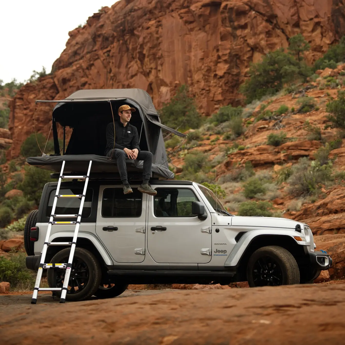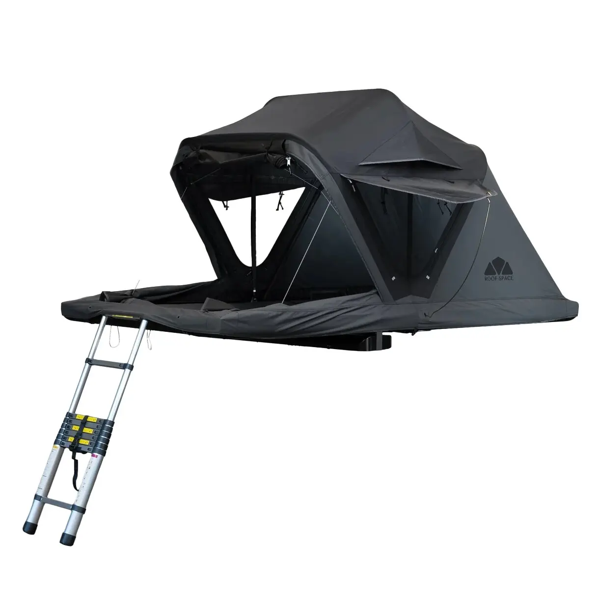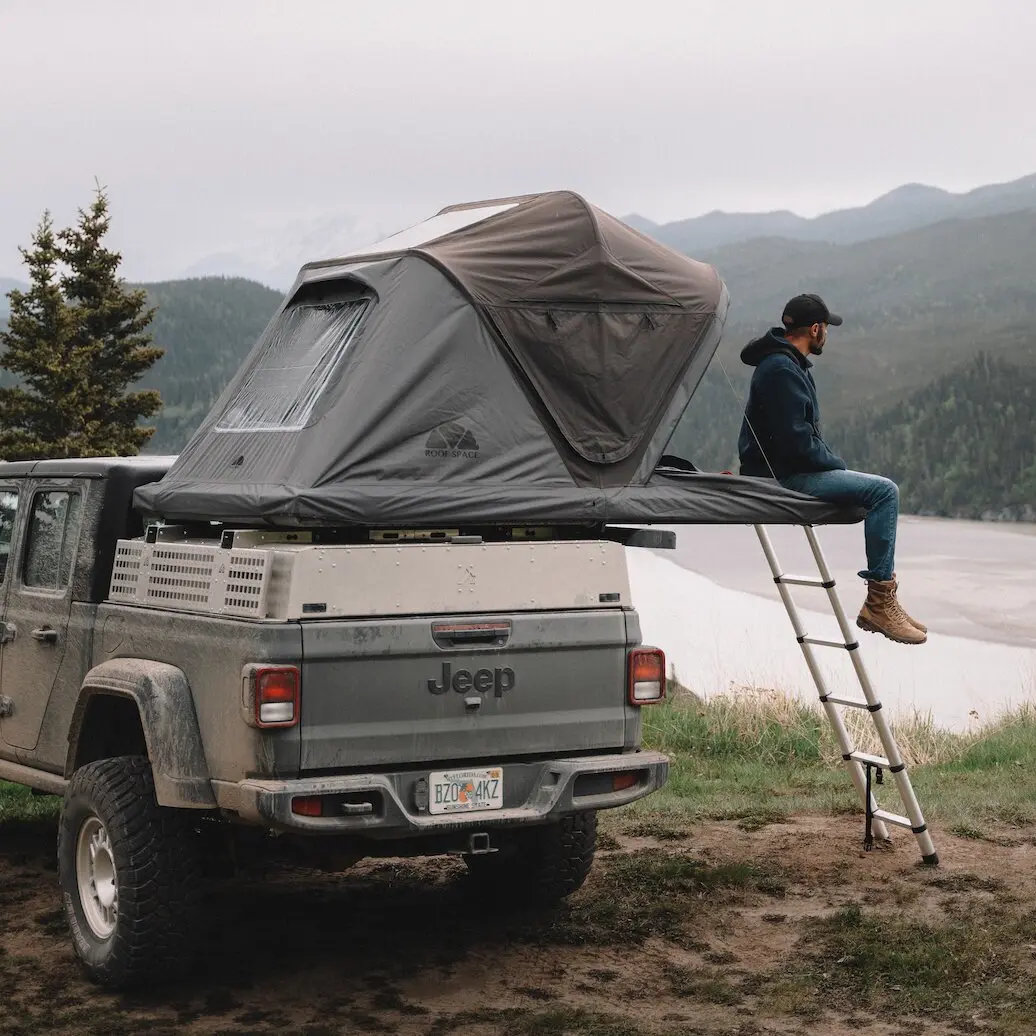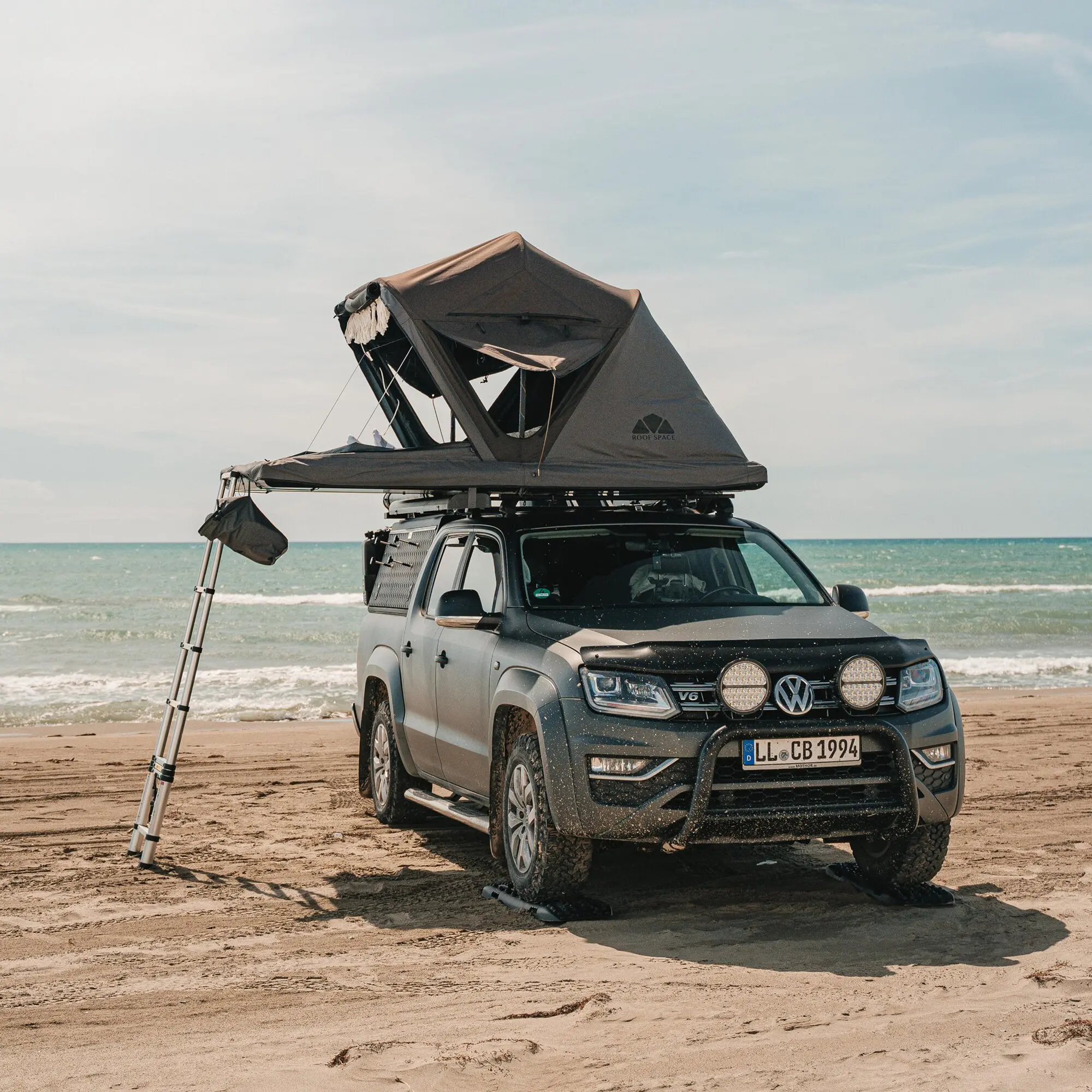 Als einziges Dachzelt für zwei Personen mit einem doppelten Stabilitätssystem bietet das Roof Space 2 zusätzliche Sicherheit. Stahlseile und das spezielle Gehäusedesign gewährleisten Stabilität, auch wenn es zu Problemen mit der Leiter kommt. Das geringe Gewicht von nur 67 kg macht es zum perfekten Begleiter für Reisen mit nahezu jedem Fahrzeug. Es ist einfach zu montieren und spart Platz.