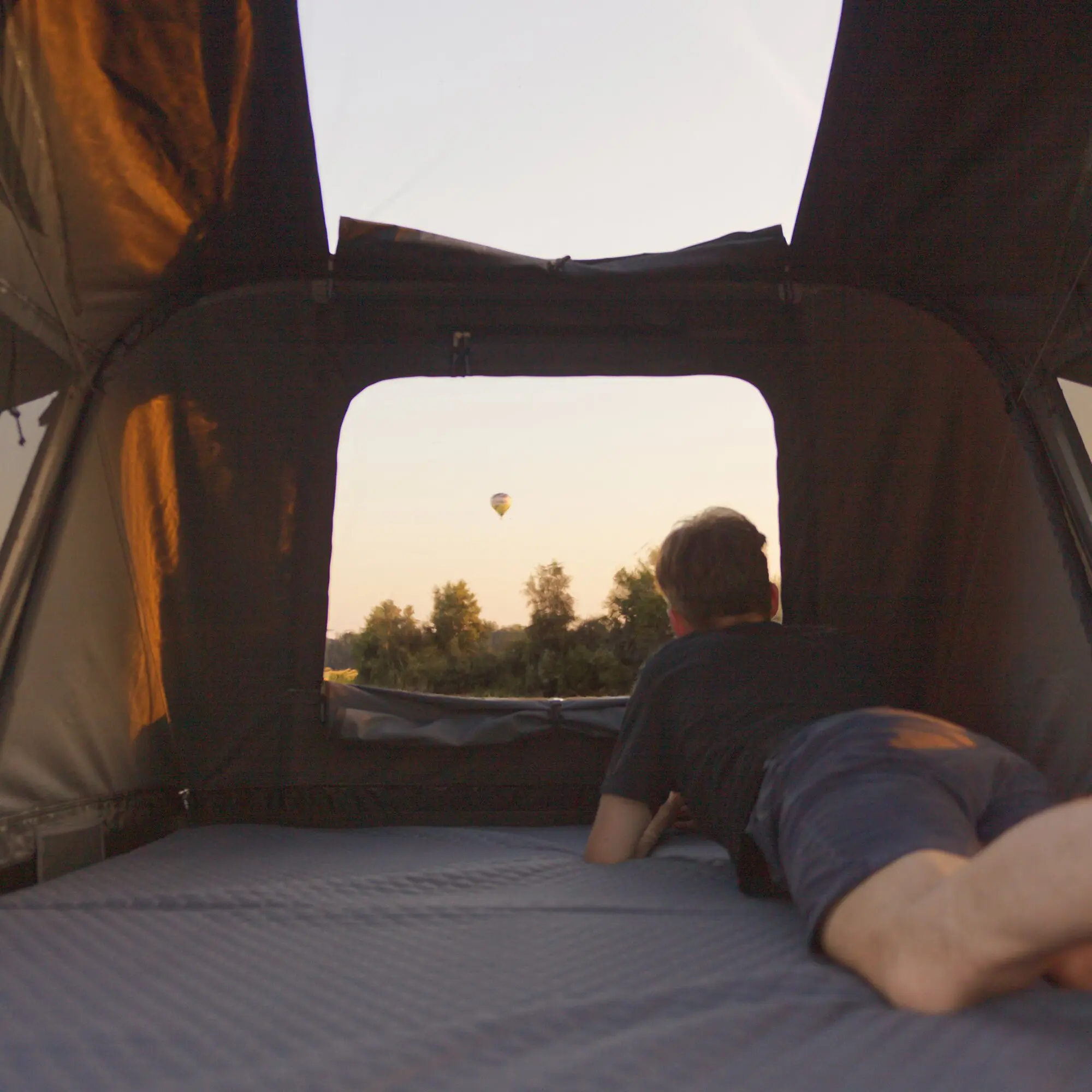 Das Roof Space 2 ist perfekt für Abenteuer unter freiem Himmel. Dank durchdachter Konstruktion und innovativer Technik ist es in weniger als zwei Minuten einsatzbereit. Das widerstandsfähige Polyester-Ripstopgewebe sorgt mit einer Wassersäule von 3000 mm für optimalen Schutz bei jeder Witterung.