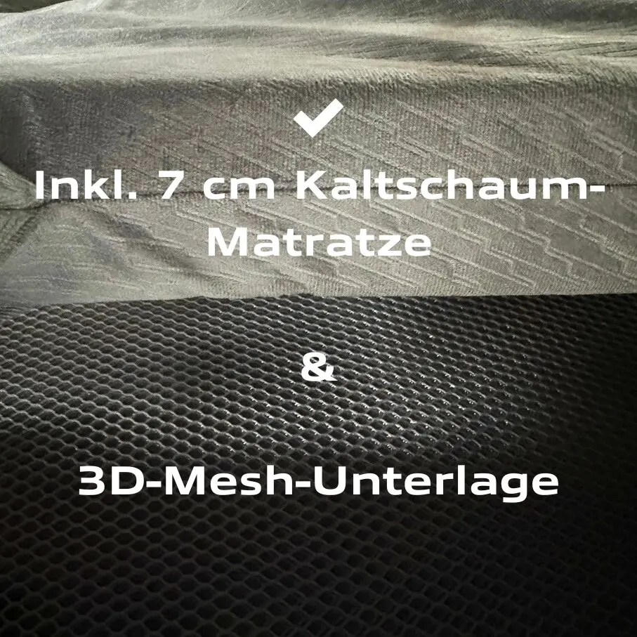 - Matratze: 7 cm Memory Foam mit Flanellbezug
