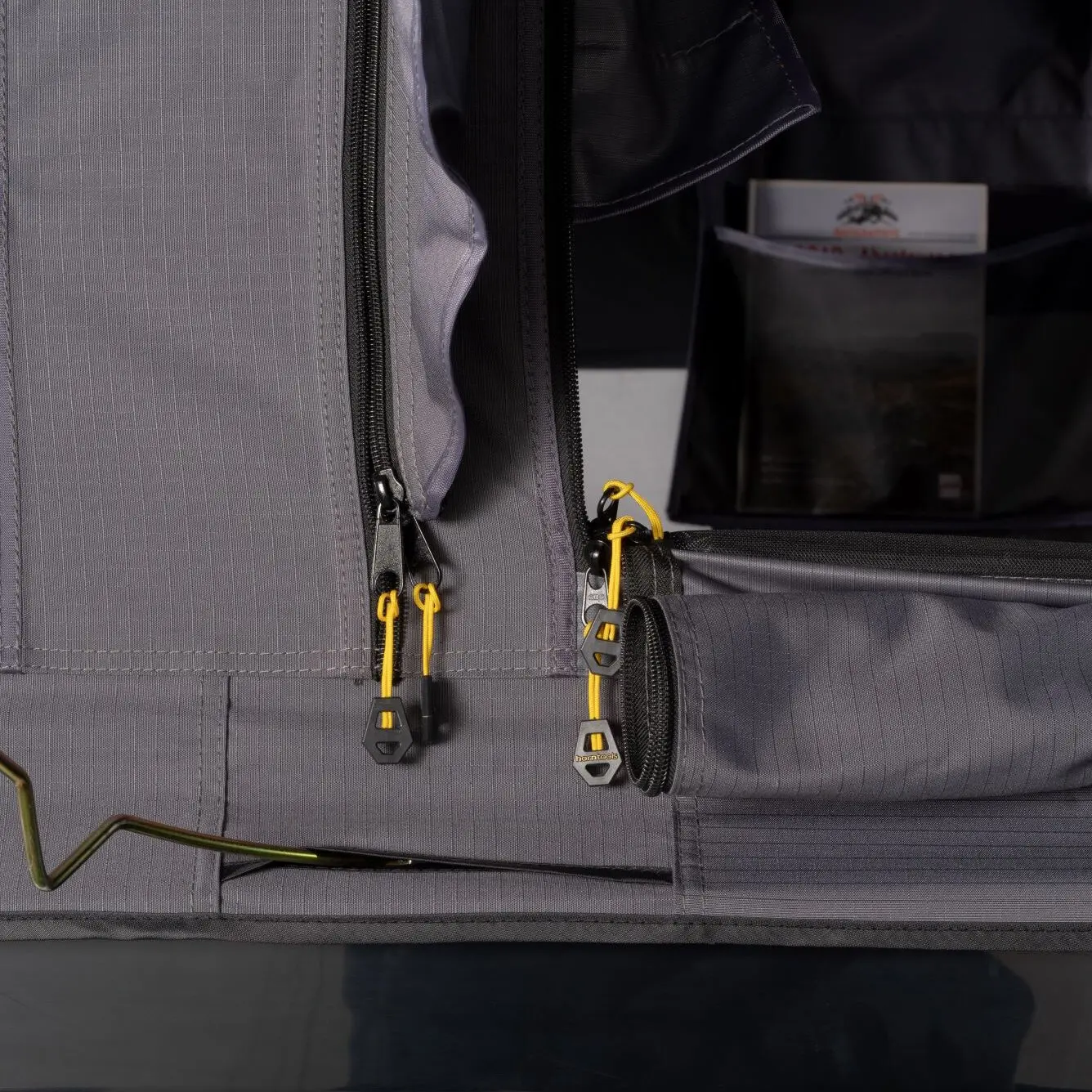 Selbst bei Regen bleibt alles trocken. Die stabile ABS-Hartschale schützt zuverlässig vor Wind und Wetter, während der hochwertige Stoff aus Baumwolle, Leinen und Polyester mit einer Wassersäule von 2000 mm auch seitlich vor Nässe schützt. Überdachte Fenster und wasserdichte Reißverschlüsse verhindern zusätzlich das Eindringen von Feuchtigkeit. Drei Fenster mit Mückennetz bieten eine hervorragende Belüftung und eine schöne Rundumsicht.