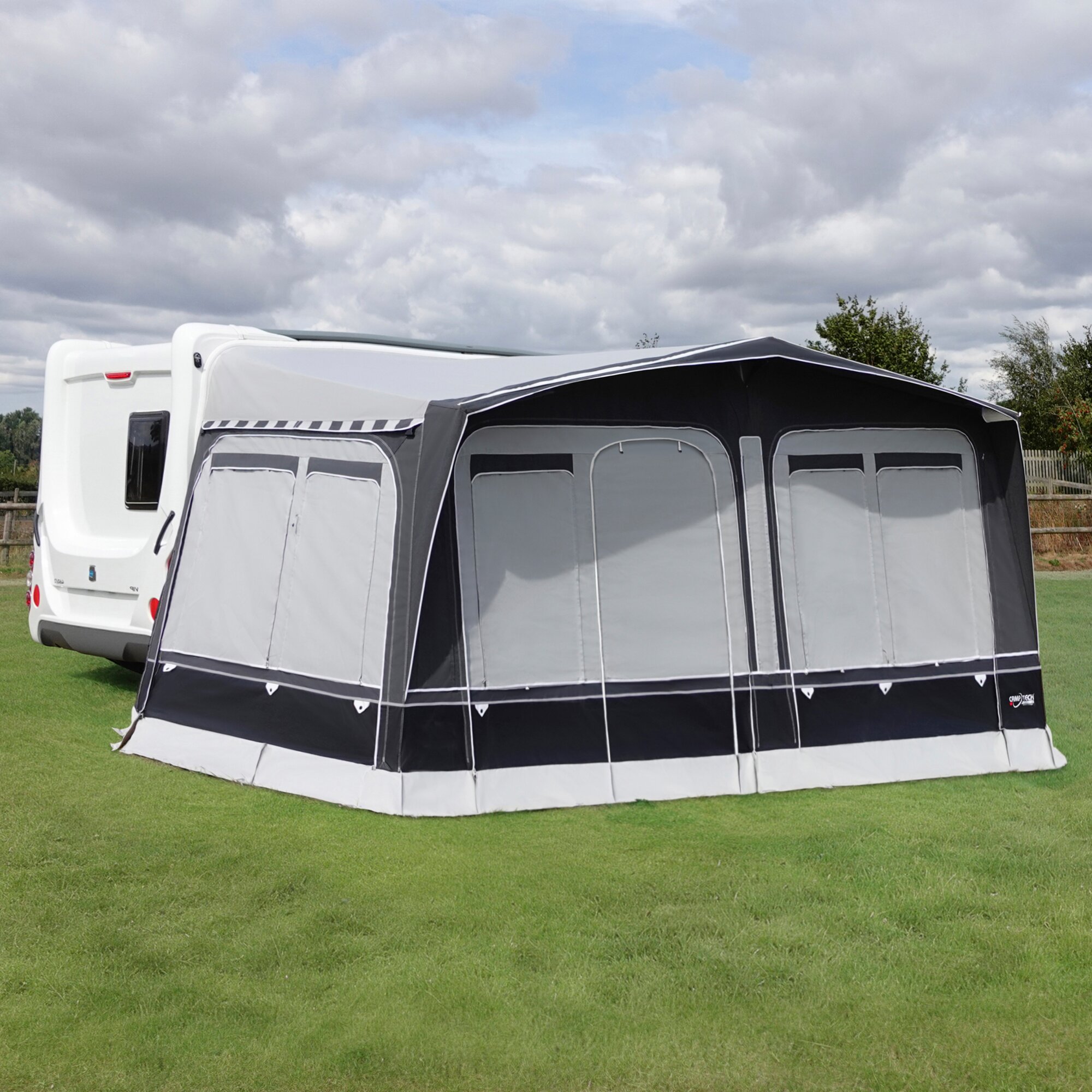 Das moderne Dauervorzelt Brillant Air zeichnet sich durch sein einzigartiges Camptex Polyacryl-Gewebe aus und punktet daher mit optimalem Raumklima und hoher UV-Stabilität. Die Nähte im Dach sind versiegelt, sodass der Quelleffekt des Nahtmaterials keine Rolle mehr spielt. Dank des Luftzeltgestänges ist das Zelt schnell und einfach aufgebaut, steht in Wind und Wetter absolut stabil und macht jedem Camper den Urlaub zur schönsten Zeit im Jahr. Einsetzbar als Reise- oder Saisonzelt. Inkl. serienmäßiger Sonnendachanbringung am Giebel, Camptech Faulstreifen Luxus, 2 Tragetaschen und ein Mehr-Ventil-System mit einem zentralen Aufblasventil und mit Absperrkammern.
