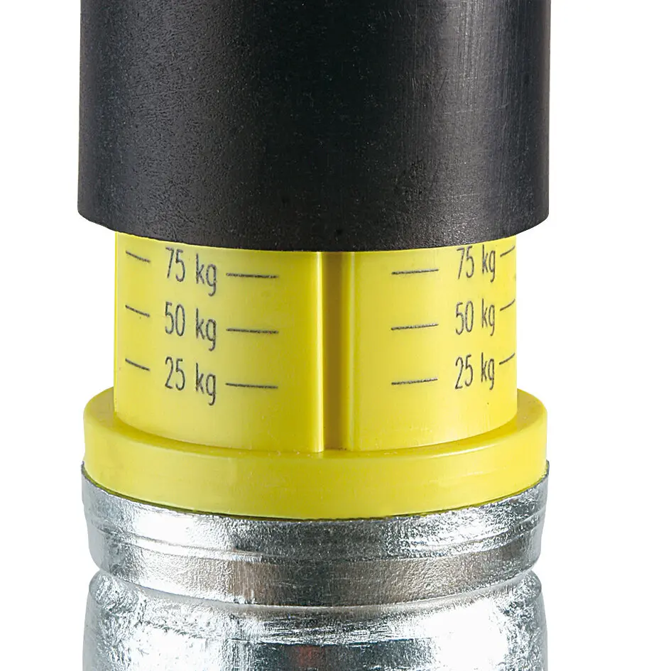 Die Skala der Stützlastanzeige ist so ausgerichtet, dass der angezeigte Wert in etwa der Stützlast vorne an der Zugkugelkupplung entspricht. So kann der Benutzer vor jeder Fahrt die Stützlast seines Anhängers leicht ablesen, um die Sicherheit während des Gespannfahrens zu gewährleisten. Das Thema Stützlast gewinnt durch die 100-km/h-Regelung noch mehr an Bedeutung. Zusätzlich erhöht die gefederte Radgabel den Rangierkomfort im abgekuppelten Zustand, da das Innenrohr wie ein Stoßdämpfer wirkt. Kein TÜV-Eintrag erforderlich. Skala 0 – 125 kg.