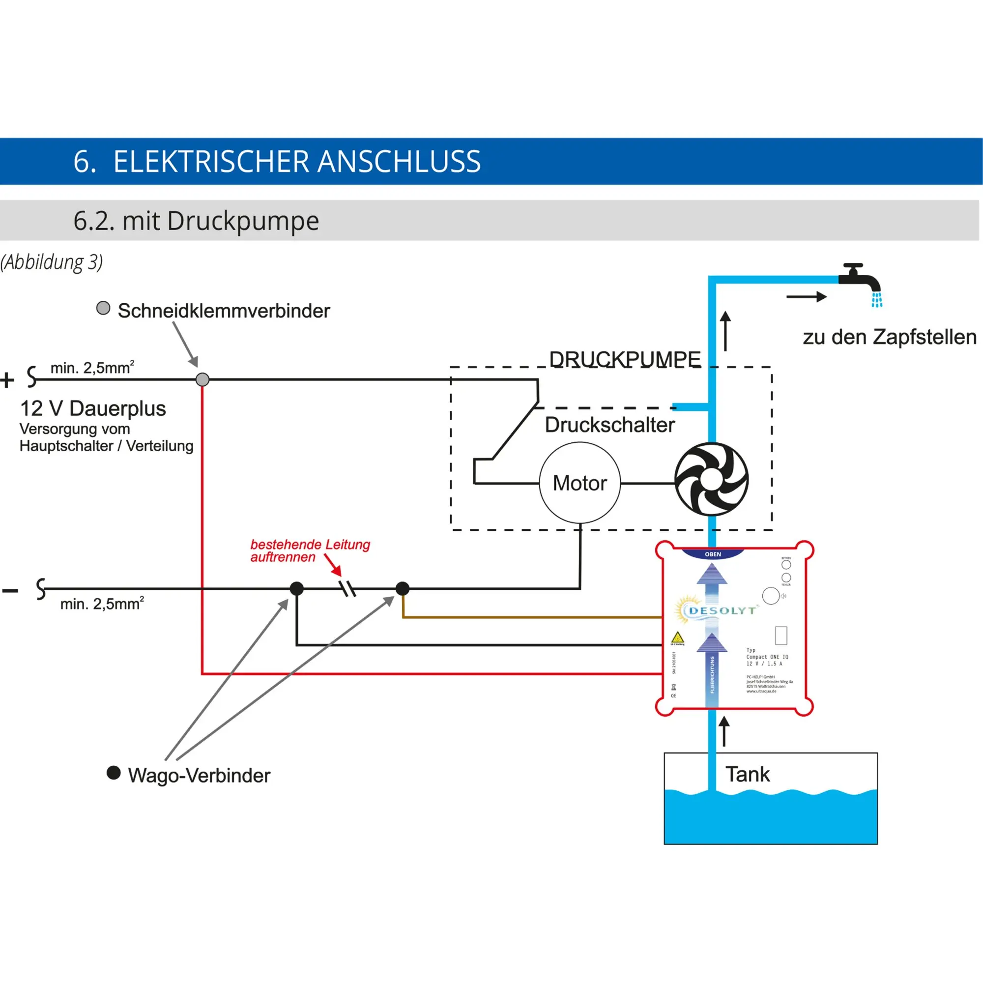 Da Schwebeteilchen die Durchdringung des Wassers mit UV-C-Strahlung behindern, empfehlen wir zur Wasserbetankung einen TW-DES Befüllfilter zu verwenden.