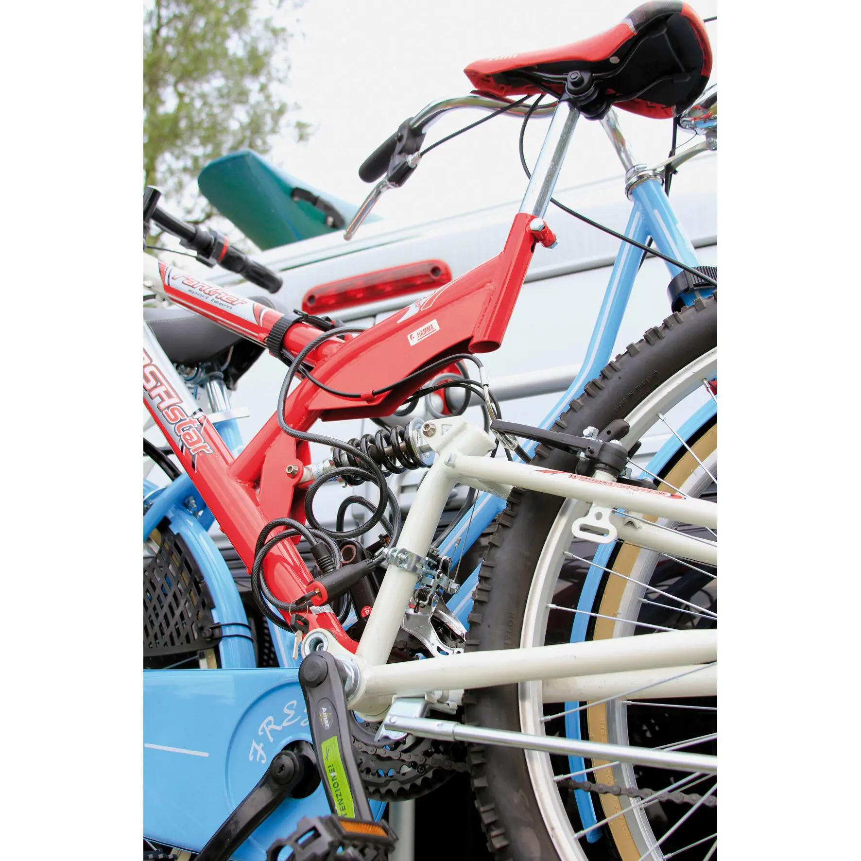 Praktische Diebstahlsicherung, die aus einem schwarzen, PVC-beschichteten Stahlkabel mit Schloss und 2 Schlüsseln besteht.