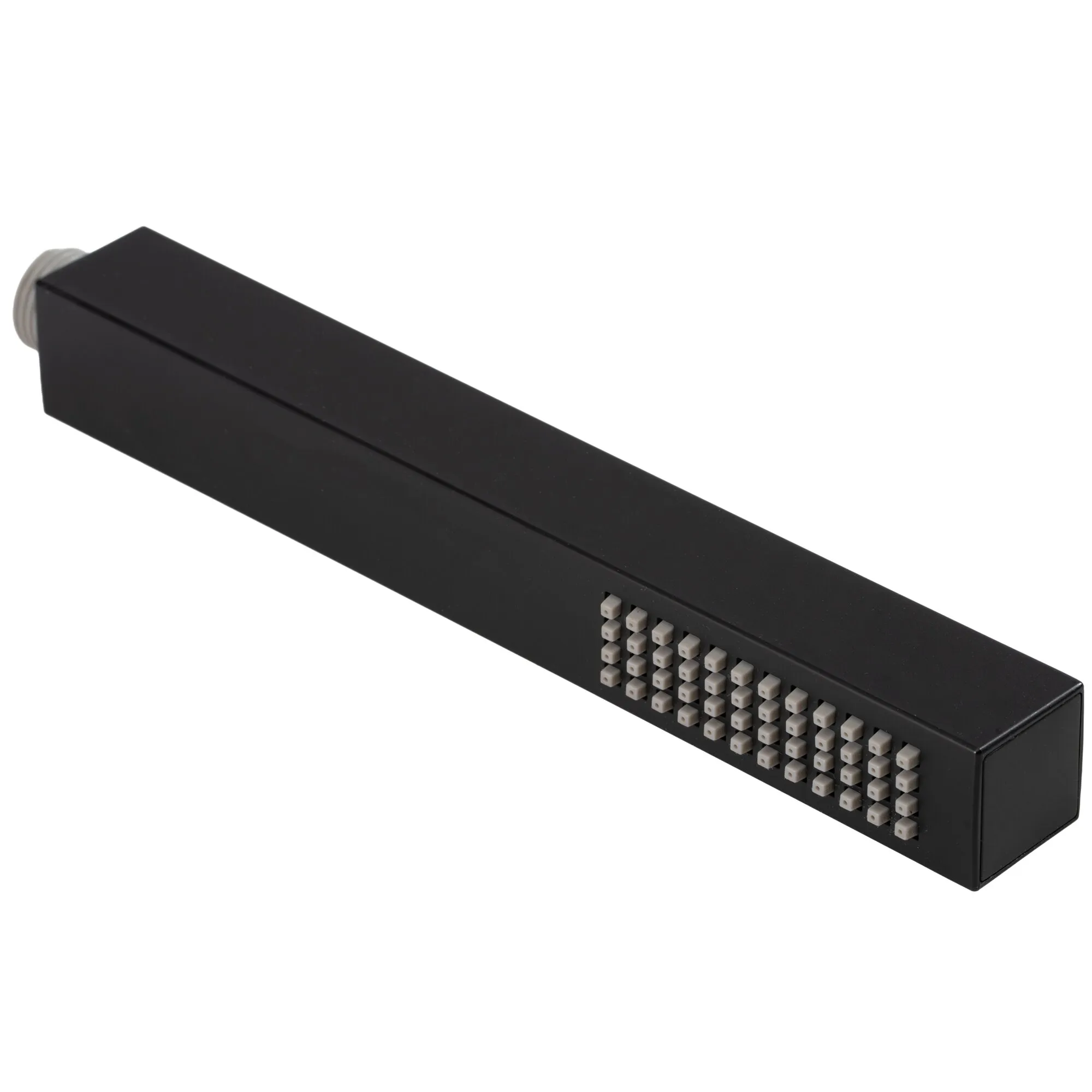 Duschkopf Valeria in Mattschwarz mit Kalkschutzdüsen. Dieses Modell zeichnet sich durch seine Anti-Kalk-Düsen aus, die eine einfache Reinigung und langanhaltende Leistung gewährleisten. Der Anschluss-Standard von 1/2" ermöglicht eine kompatible und problemlose Installation in den meisten Badezimmern.