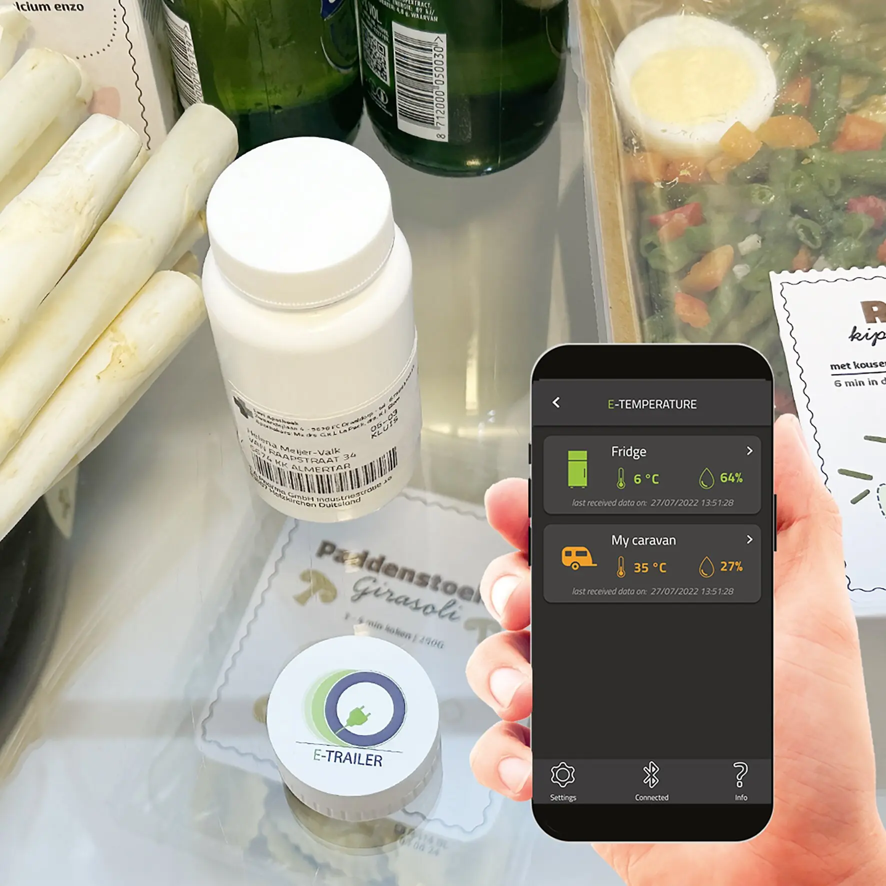Mit dem E-Temperature Modul kannst Du die Temperatur und den Feuchtigkeitsgehalt innerhalb und außerhalb deines mobilen Zuhauses per App einsehen. Beliebt ist das Modul auch zur Überwachung der Kühlschranktemperatur. So kannst Du immer sicherstellen, dass deine Drinks erfrischend kühl bleiben und auch die Lebensmittel perfekt temperiert sind und länger haltbar sind. Gerade bei Fleisch, Fisch und Milchprodukten ist die richtige Kühlschranktemperatur essenziell.