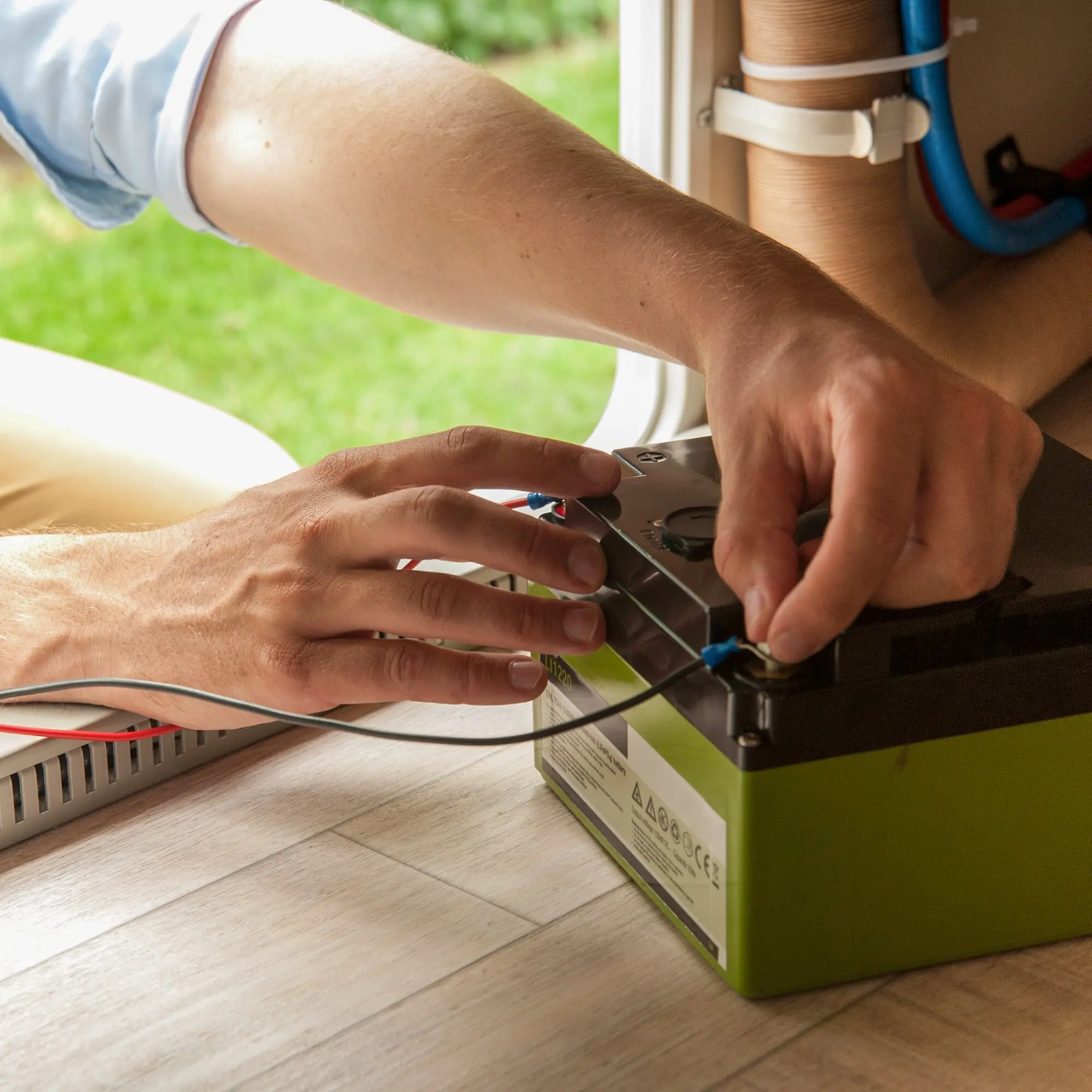 Das Modul E-Volt informiert den Camper über den Füllstand und die aktuelle Spannung seiner Wohnraumbatterie. Der Batteriestatus wird in der E-Trailer-App sichtbar gemacht und der Camper kann einen Schwellenwert festlegen, bei dem ihn die App aktiv vor zu niedrigem Ladungsstand warnt, rechtzeitig bevor die Batterie ganz leer ist. Das E-Volt Modul ist Bestandteil des Basispakets.