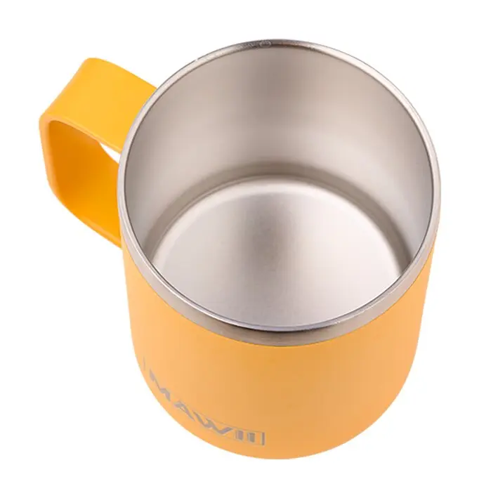 Der Becher besteht aus hochwertigem 18/8 Edelstahl. Das Material ist rostfrei, strapazierfähig und überzeugt durch seine bruchfeste Farboberfläche, die weder abblättert noch Risse bekommt. Mit seinem modernen Design und dem praktischen Henkel ist der Becher ein Blickfang – ob zu Hause, im Büro oder unterwegs im Urlaub.