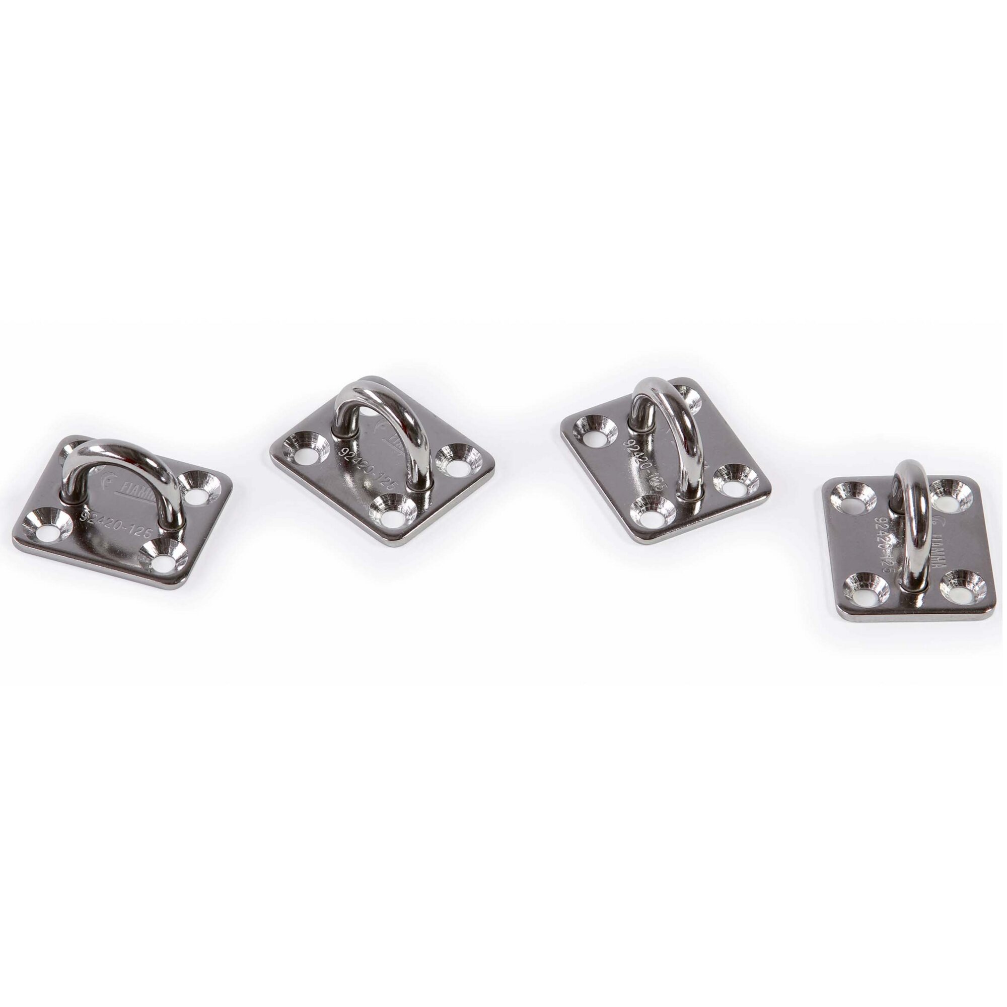 Haken aus Edelstahl zur Befestigung am Boden oder an der Wand, um Riemen oder Gummibänder einzuhängen.