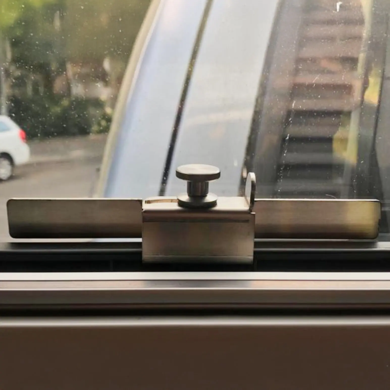 Durch ein verklebtes Sicherheitsprofil aus V4A werden die Verschlüsse am Fenster unterstützt und ein Einbruch durch Aufreißen der Fenster mit bloßer Hand oder einem Schraubendreher wird verhindert.