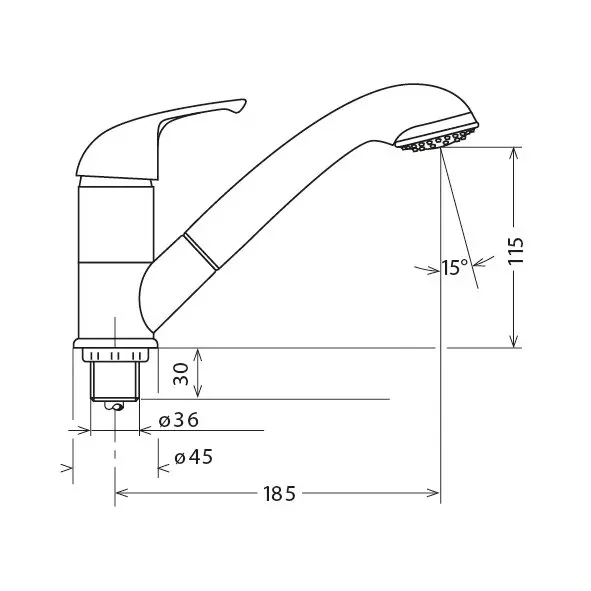Mit herausziehbarer Brause, schwenkbar um ca. 90°.
