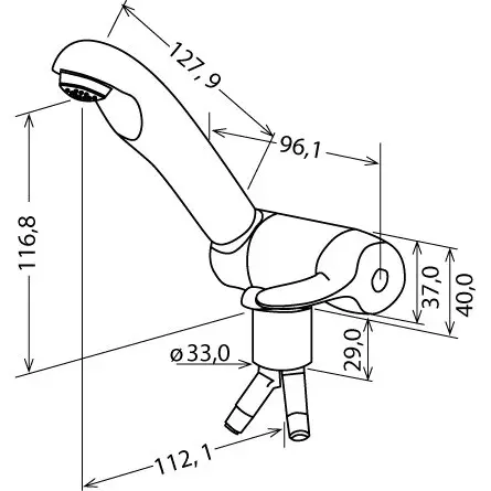 Auslauflänge: 112 mm. Abklappbar.