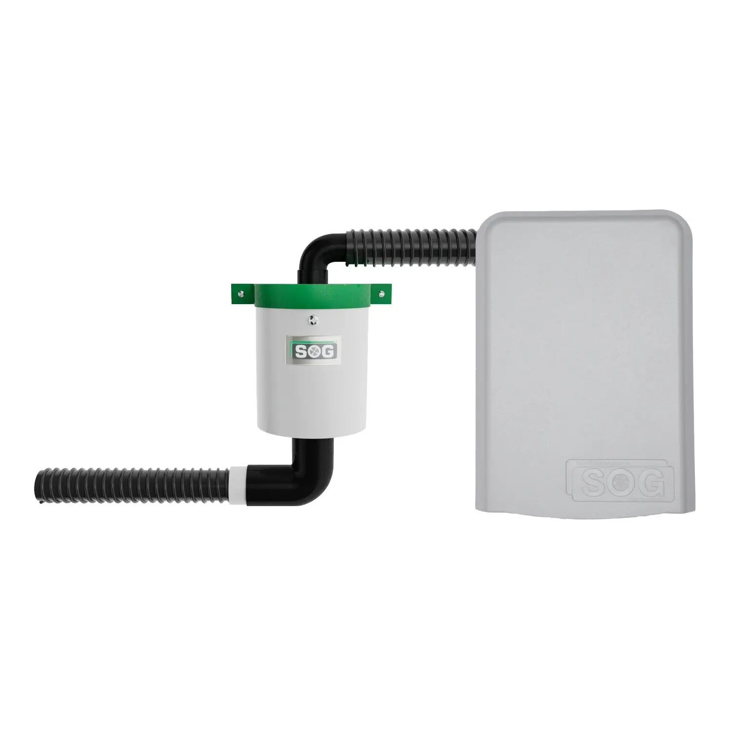 Der Hochleistungslüfter wird auf der Innenseite der Entsorgungsklappe montiert. An der Außenseite der Entsorgungsklappe wird das Gehäuse mit Aktivkohlefilter montiert. Das unauffällige Kunststoffgehäuse ist in den Farben Weiß, Hellgrau, Dunkelgrau und Schwarz erhältlich. Es kann zudem in der Fahrzeugfarbe lackiert werden. Über die Serviceklappe ist das SOG System am einfachsten zu montieren.