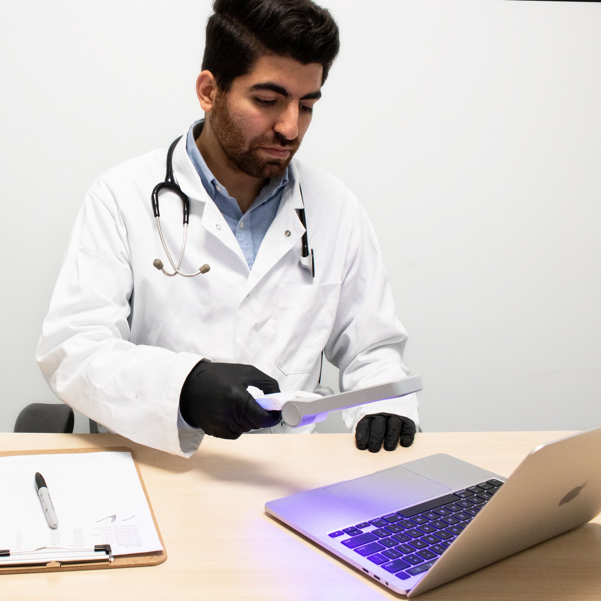 Solarix is a powerful, handy UV LED disinfector – portable and foldable. It quickly and easily disinfects surfaces – in less than 10 seconds, surfaces are disinfected of 99.9% of viruses and bacteria. The device can be opened up to 270° to disinfect inaccessible areas or objects with difficult shapes.